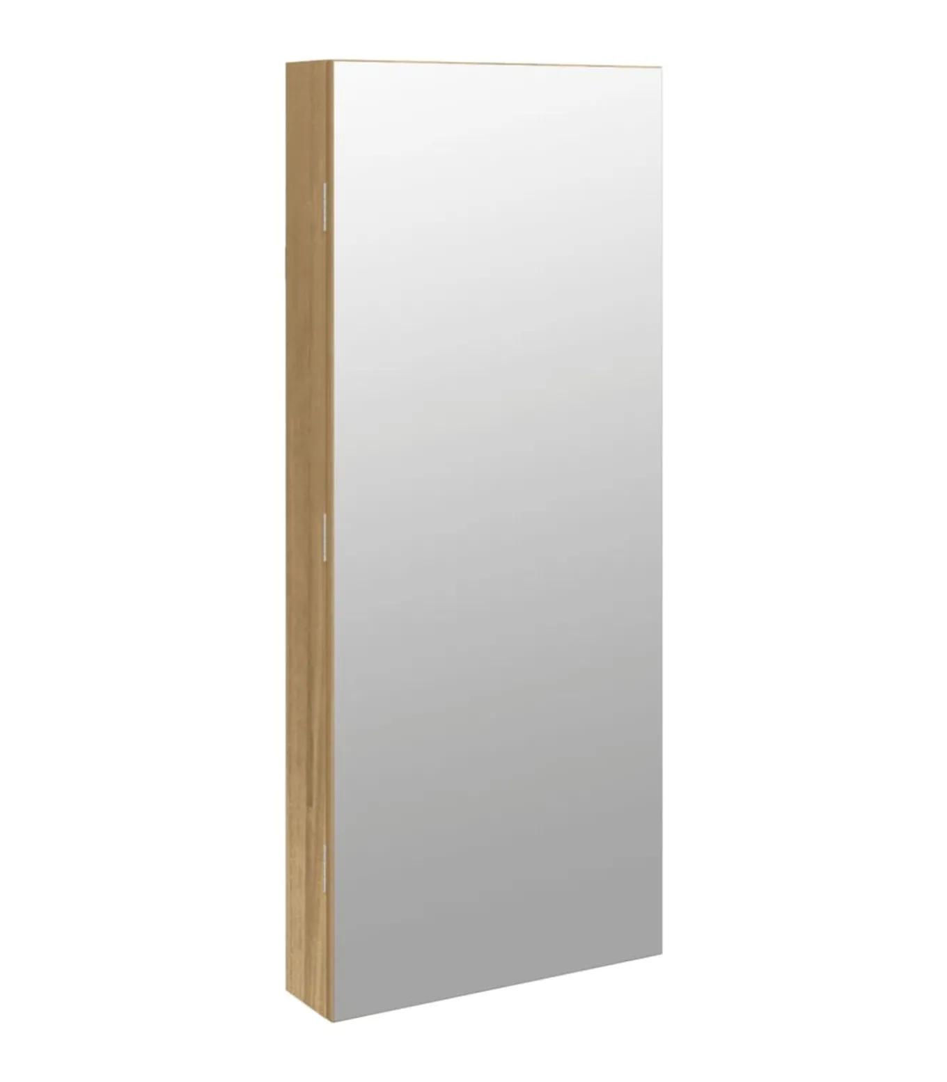 Voldoende opbergruimte: de spiegel met opbergruimte heeft veel haakjes, hangers en plankjes om je sieraden netjes geordend en binnen handbereik te houden.