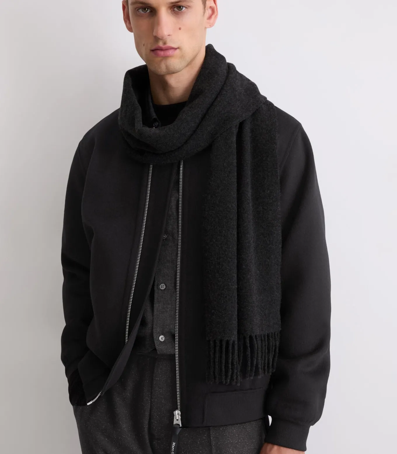 Deze sjaal van zachte schapenwol biedt behaaglijke warmte en een hoog draagcomfort dankzij de dichtgeweven structuur. De fijne franjes aan de uiteinden zorgen voor een subtiel accent. Hij is verkrijgbaar in klassiek zwart, grijs en andere kleuren en kan op verschillende manieren worden gecombineerd.