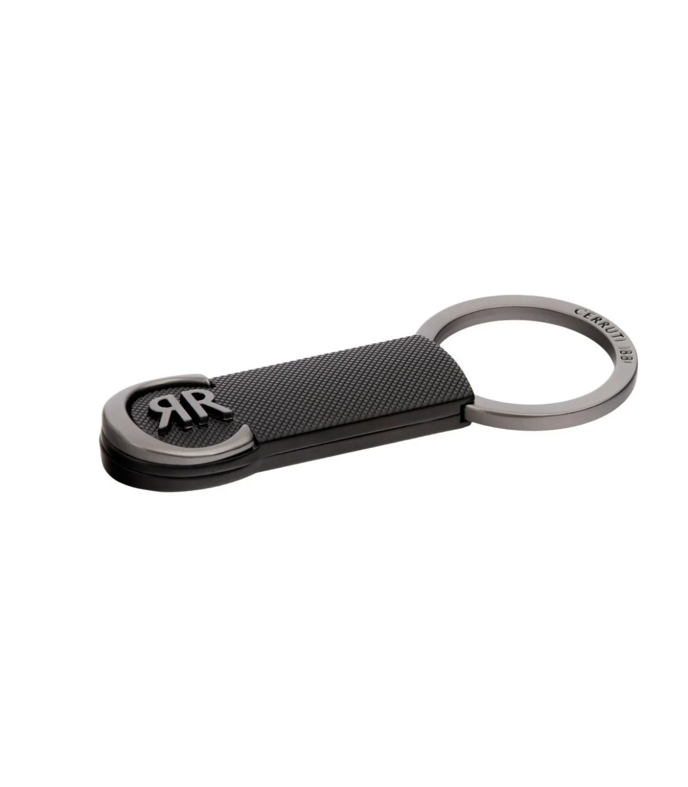 De Belgravia sleutelhanger viert het iconische CRR–logo van Cerruti 1881, met prachtige, contrasterende metalen afwerkingen. Gemaakt van messing, het hoofdoppervlak is luxueus gegraveerd met een geometrisch patroon en contrasteert met de zachte plating van het logo voor een effect dat zowel luxueus als ingetogen is. Deze versie speelt in op het contrast tussen mat zwart en mat gunmetal voor een echt eigentijds effect. Dimensions: 20 x 5 x 48/RING:30 mm, Material: 100% Zinc alloy