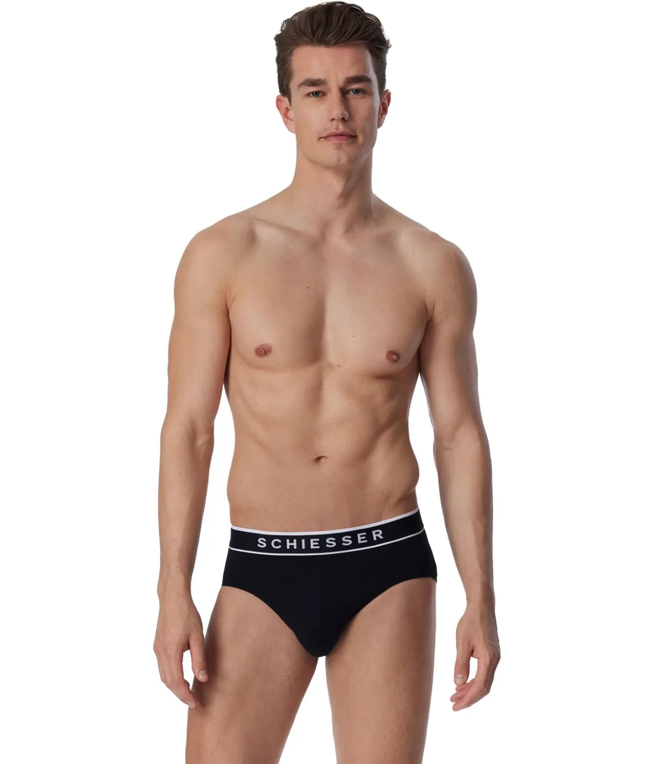 Zes Rio–slips voor heren van SCHIESSER. Elastische jersey–kwaliteit van biologisch katoen met stretch. Comfortabele geweven elastische tailleband met logo.