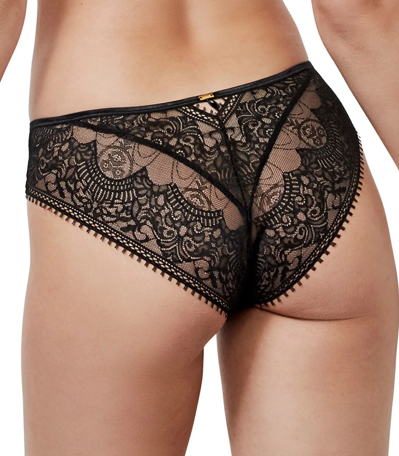 Een klassiek gesneden slip die vrouwelijk, elegant en comfortabel is, ideaal voor een chique alledaagse look. De tailleband aan de voorkant is versierd met een klein gouden juweel dat in het midden van de tailleband is genaaid en een verleidelijke touch toevoegt. De achterkant, geheel van fijn kant met bloemen– en arabeskmotieven, onderstreept de gedurfde, verfijnde stijl van het model. Afgewerkt rond de benen met een fijne sierlijke picot vlecht, die een delicate touch toevoegt. Katoenen kruisje voor gegarandeerd intiem comfort. Klein goudkleurig logo op de achterkant.