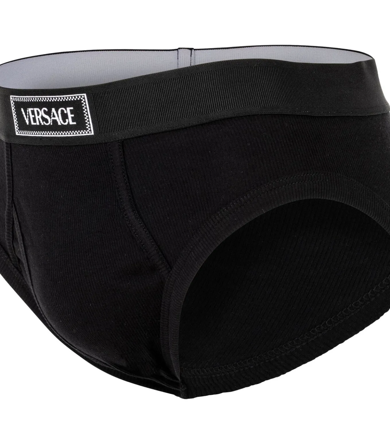 Geribbelde herenslip van het merk VERSACE. Hoogwaardige broek van elastische katoenen jersey. Geweven elastische tailleband met geïntegreerd logo–opschrift.
