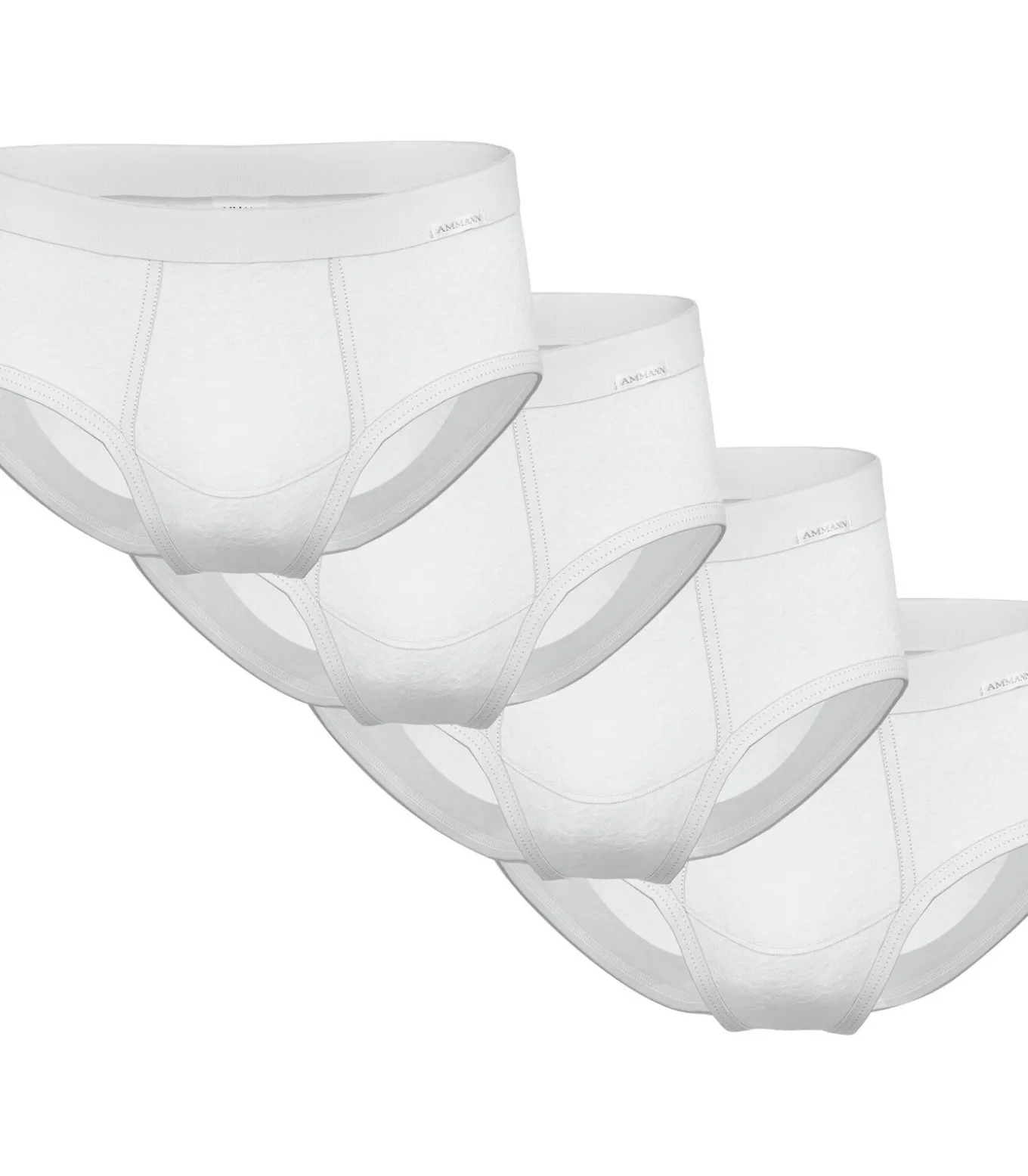 AMMANN herenslip in een praktisch 4–pack. Fijne ribbroek van zuiver katoen met gulp. Basic slip met klein logo op de tailleband.