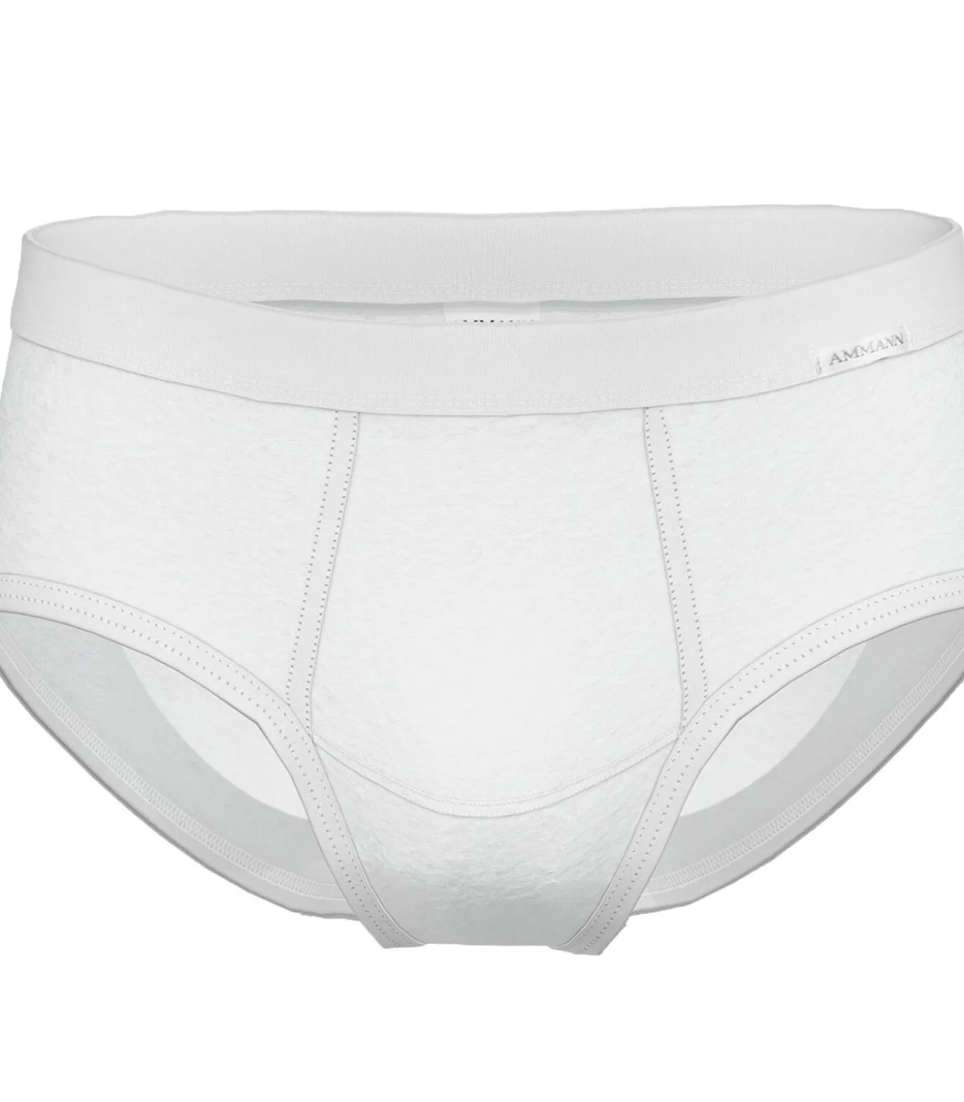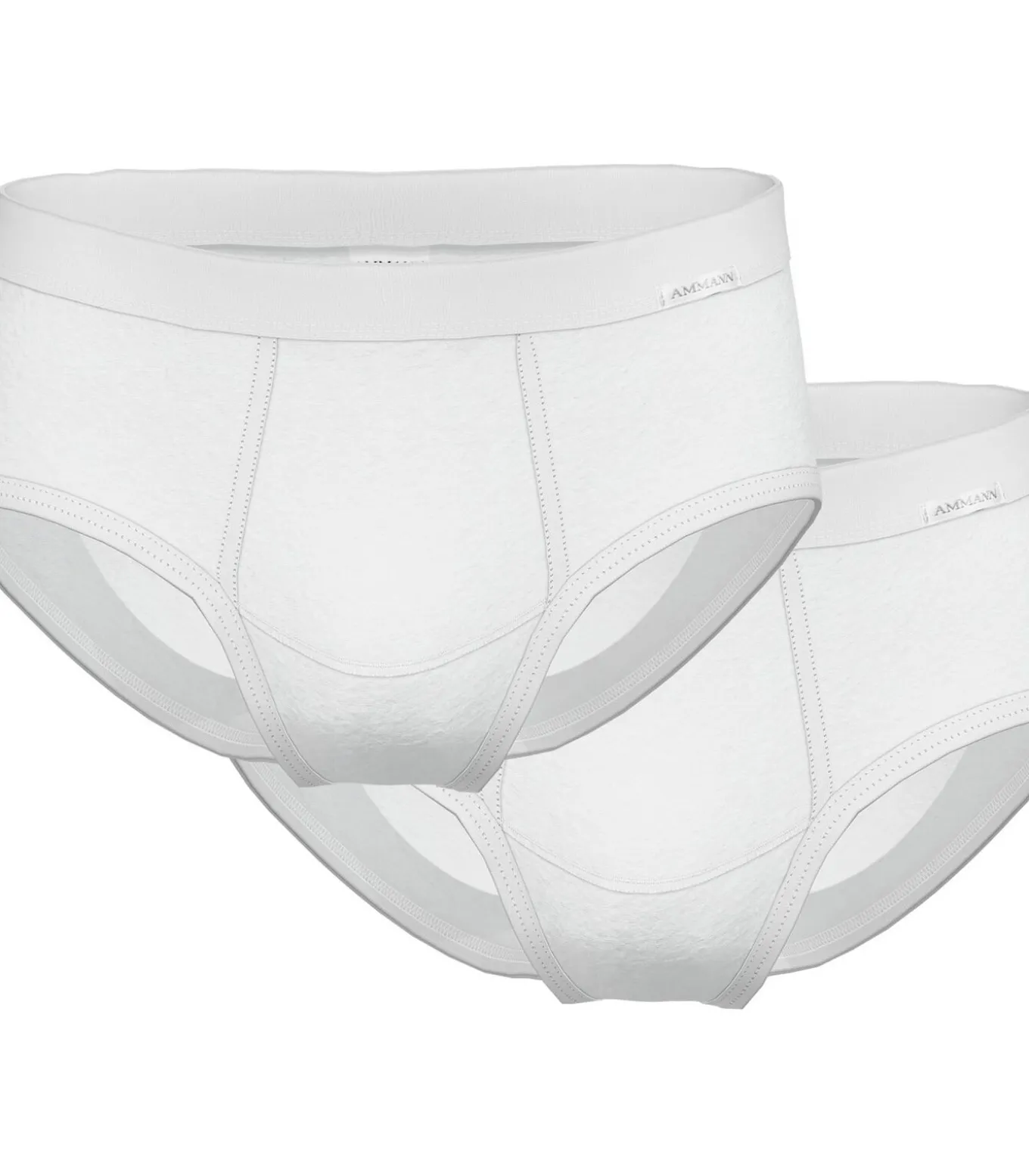 AMMANN herenslip in een praktisch 2–pack. Fijne ribbroek van zuiver katoen met gulp. Basic slip met klein logo op de tailleband.