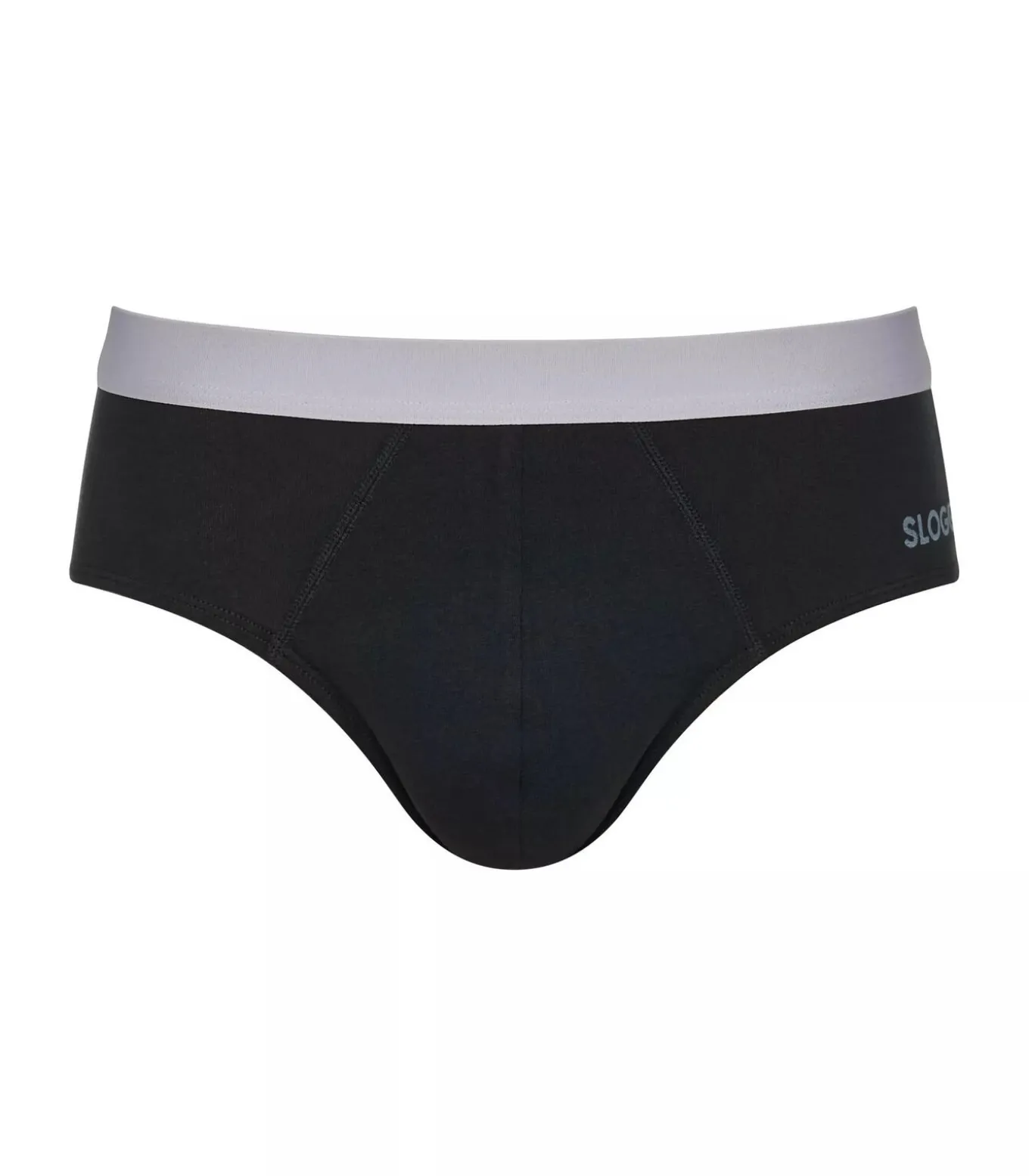 Set van 2 klassieke slips Katoen/elastaanmix –zacht Zilvergrijze elastische tailleband geweven met klein logo Nieuw kruisje van één laag voor meer comfort Platte naden aan de voorkant voor extra comfort