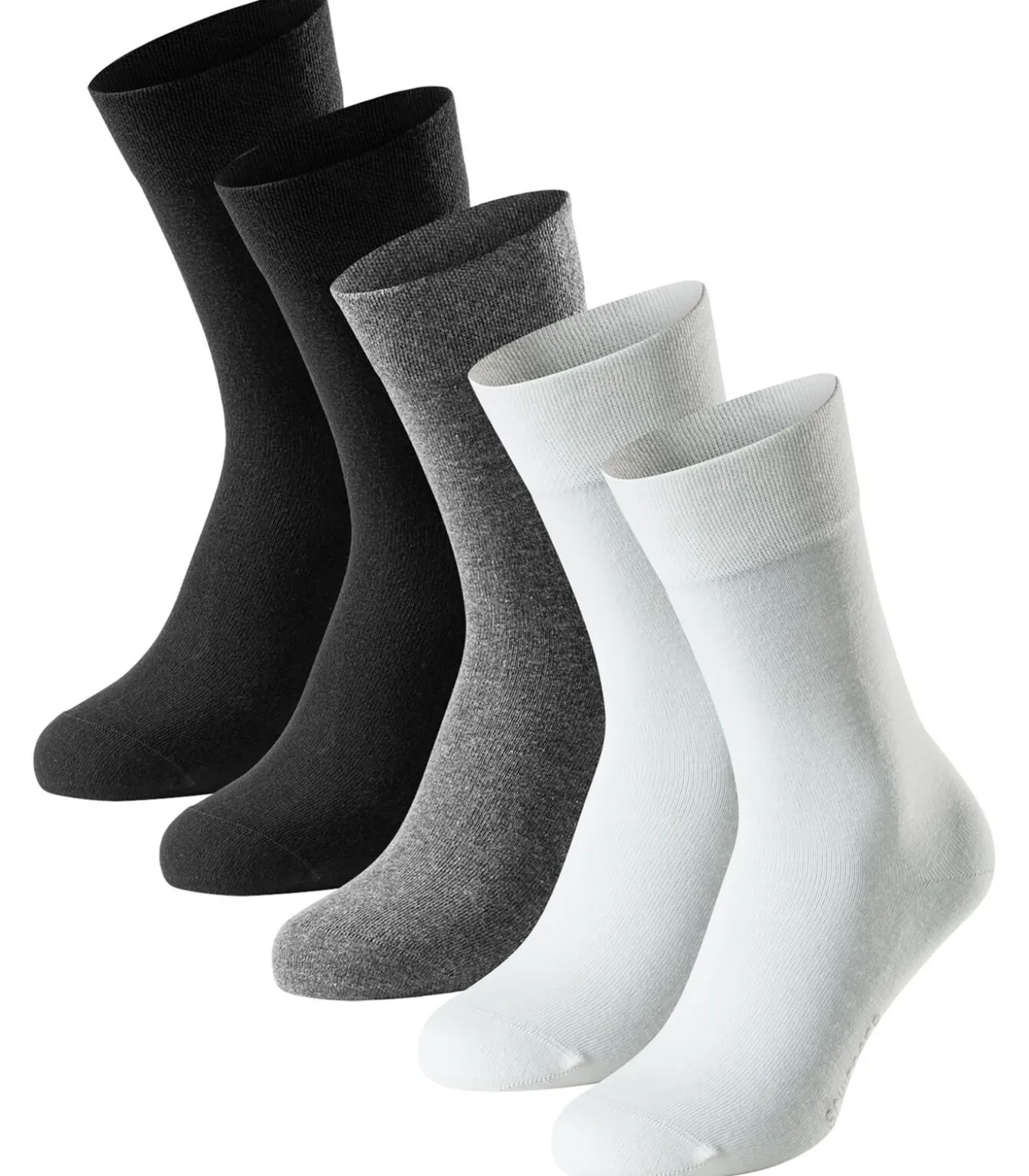 Vijf paar korte sokken voor heren van SCHIESSER. Met hoogwaardig fijn gekamd katoen, drukvrije boord, handgeknoopte tenen en hielen.
