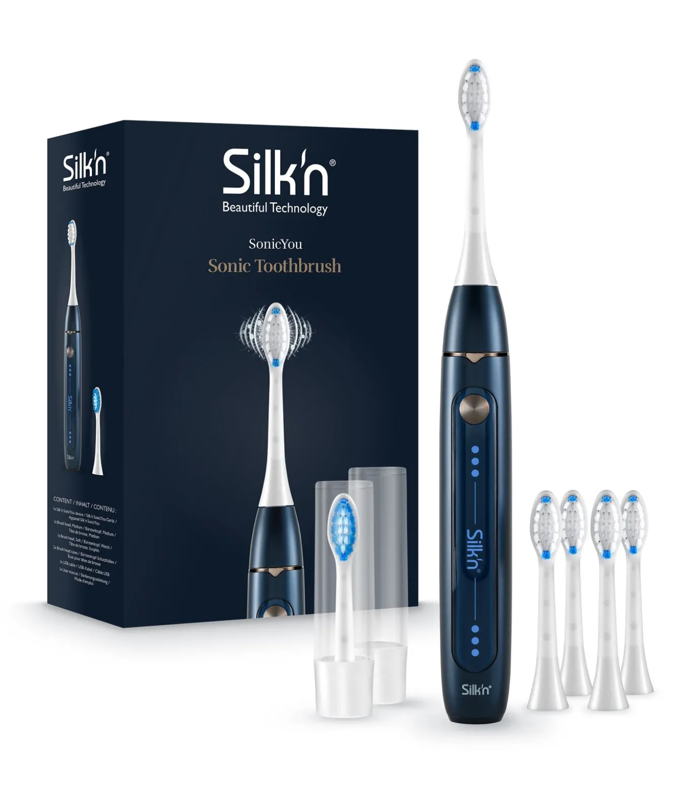 De SonicYou kan moeilijk bereikbare plaatsen reinigen en reinigt tot diep tussen de tanden. Met zijn sonische vibratietechnologie pakt het tandplak en onzuiverheden effectiever aan dan een handtandenborstel voor een stralende lach. Deze handige bundel bevat een donkerblauwe SonicYou en 4 navullingen voor de Silk’n medium opzetborstel om uw glimlach nog langer stralend te houden.