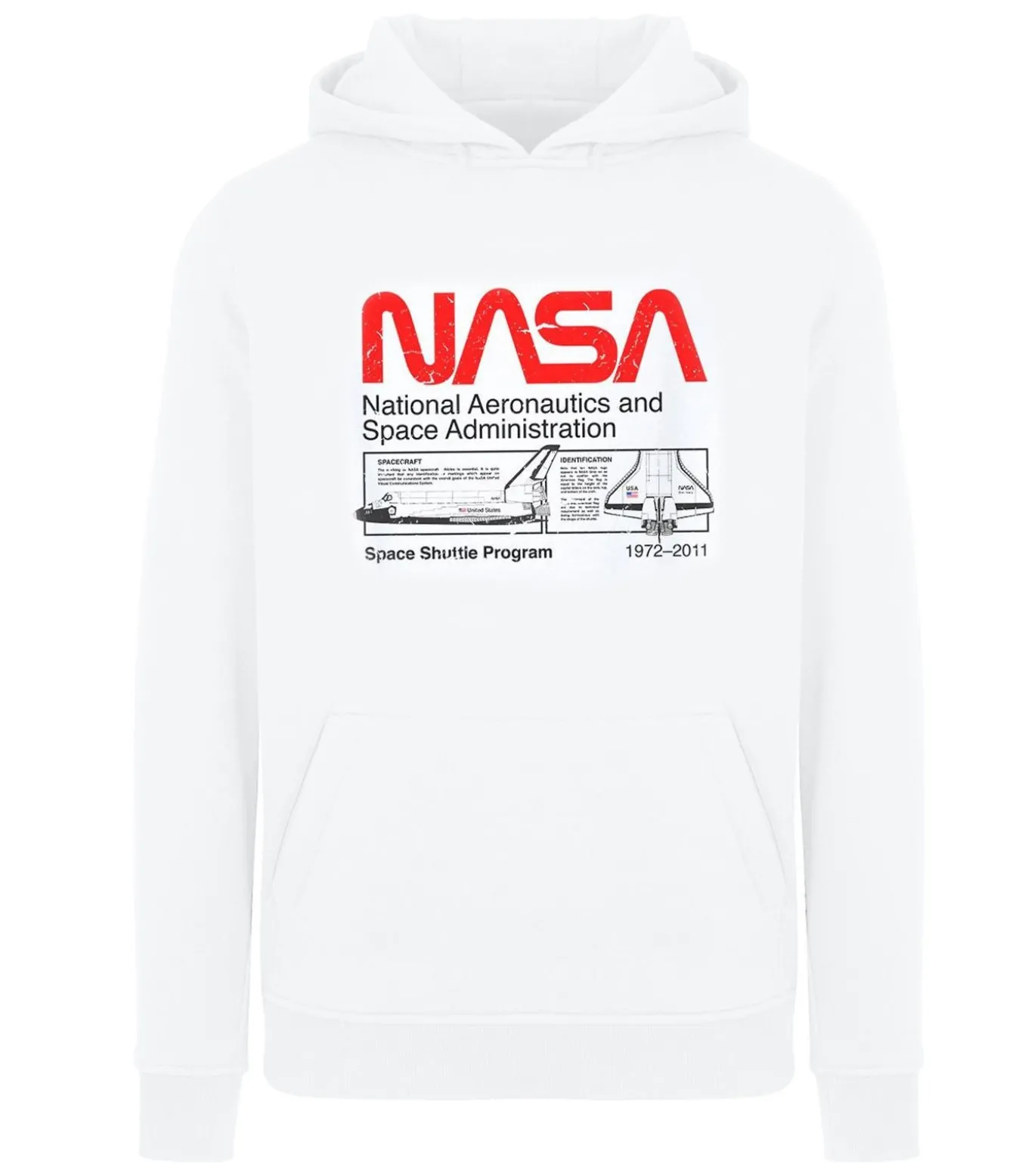 Dit officieel gelicentieerde NASA kledingstuk is een sweatshirt met capuchon en is geschikt voor ruimtevaartliefhebbers van alle leeftijden. Het sweatshirt is gemaakt van een duurzame mix van 50% katoen en 50% polyester met een gewicht van 280 g/m² en is voorzien van het iconische spaceshuttle–logo en NASA–tekst op de voorkant. De capuchon is dubbellaags voor extra warmte en comfort, en de zoom en manchetten zijn getailleerd voor een goede pasvorm. Een handige kangoeroezak siert de voorkant, terwijl de lange mouwen en het pullover–ontwerp zorgen voor draaggemak. Met zijn robuuste constructie en officiële NASA–merk is dit sweatshirt een must–have voor wie zowel stijl als functionaliteit zoekt in zijn casual bovenkleding.
