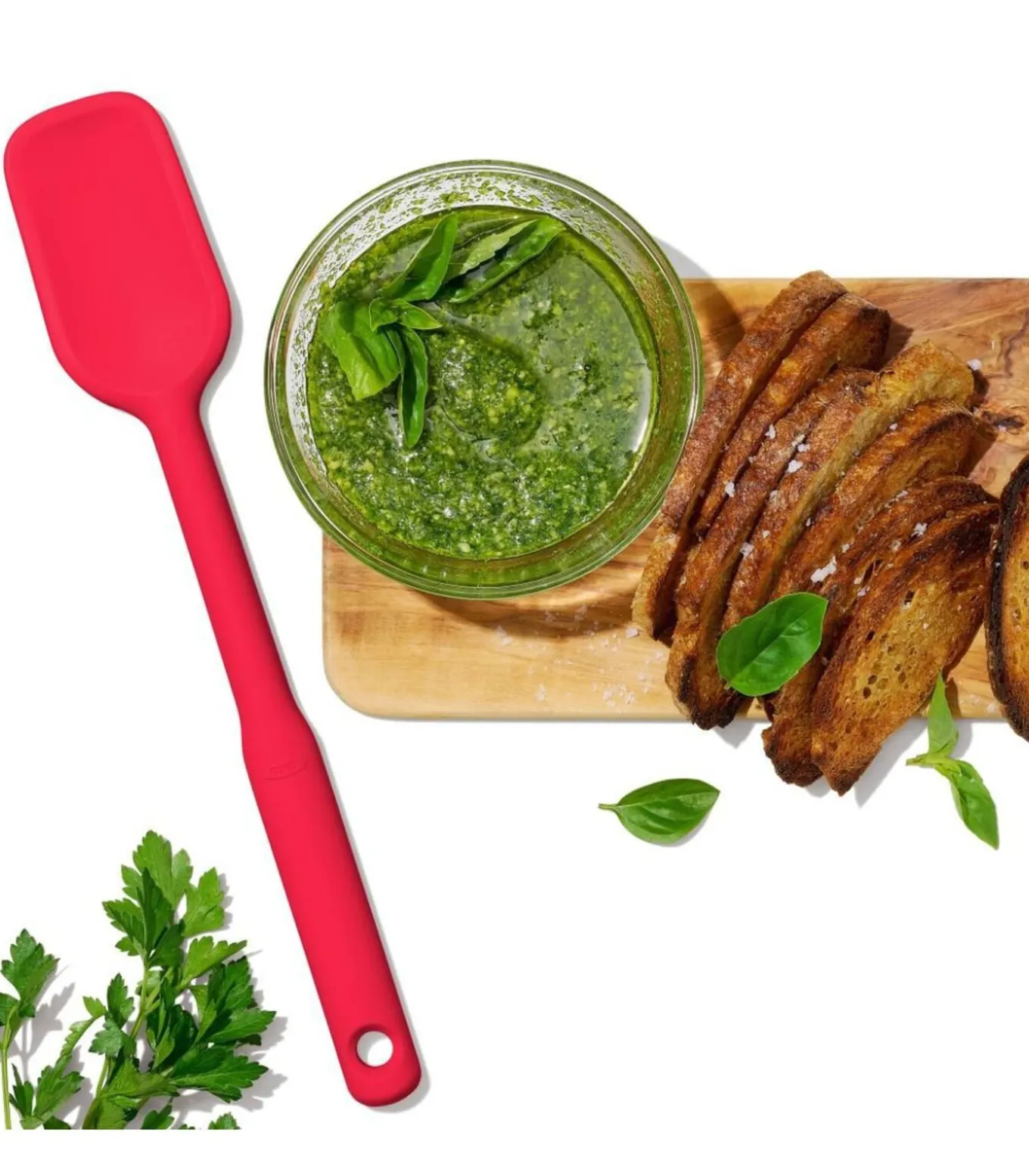 Deze siliconen lepel van OXO Good Grips is handig om te mixen, schrapen, scheppen en roeren. De kop en hals zijn gemaakt van siliconen. Dit is hittebestendig tot maar liefst 300°C en bovendien veilig voor gebruik in kook– en bakgerei met een anti–aanbaklaag. De zachte, comfortabele greep steunt je hand tijdens het gebruik en is anti–slip, zelfs wanneer je handen nat zijn. Na gebruik mag de lepel in de vaatwasmachine.