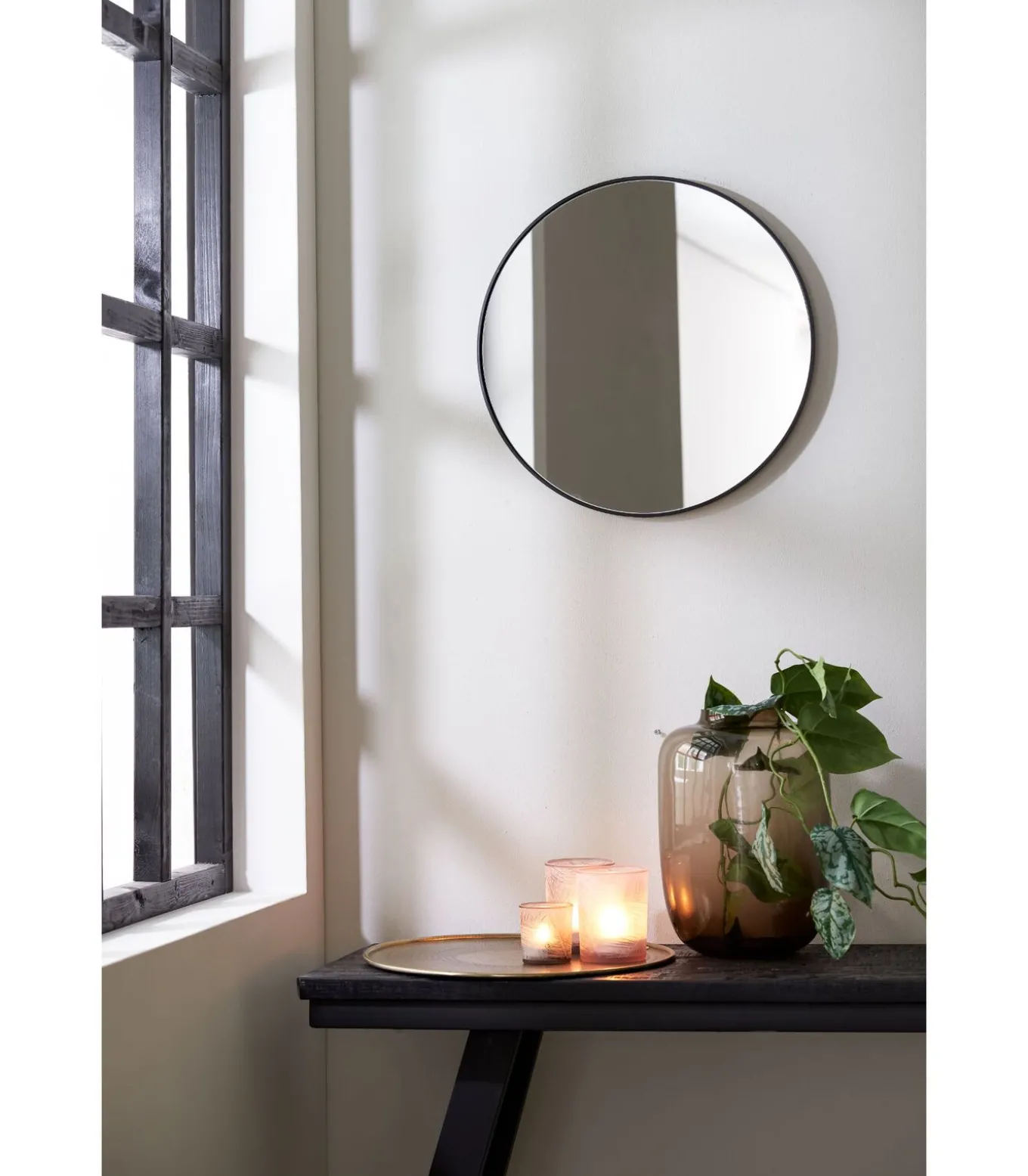 Verfraai je badkamer of hal met de Espejo spiegel. Met een Ø50cm zwarte touch is deze eenvoudige en ronde spiegel perfect om een vleugje elegantie aan je ruimte toe te voegen. Het veelzijdige ontwerp maakt het makkelijk te combineren met elke interieurstijl.