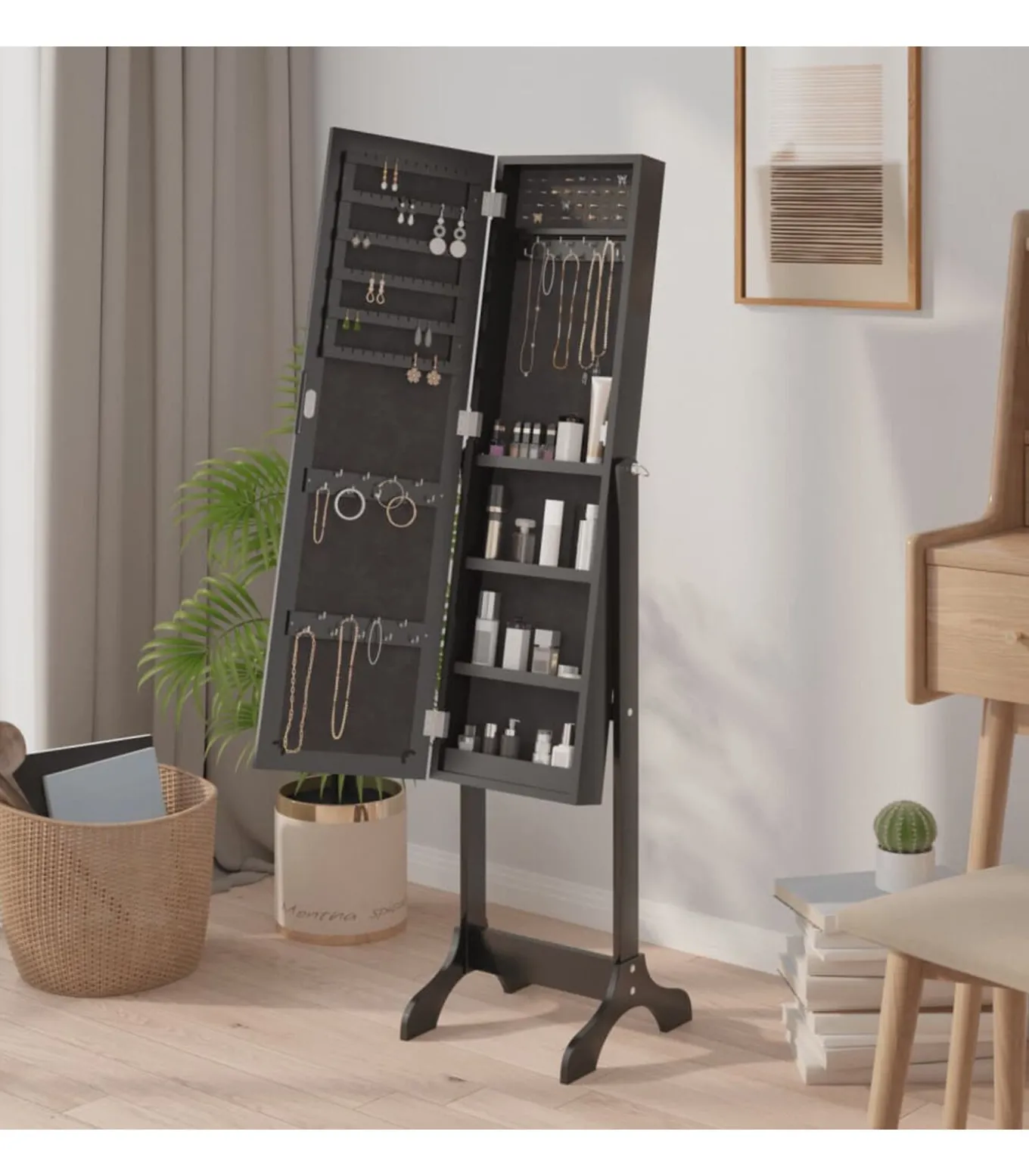 Spiegel vrijstaand 34x37x146 cm zwart