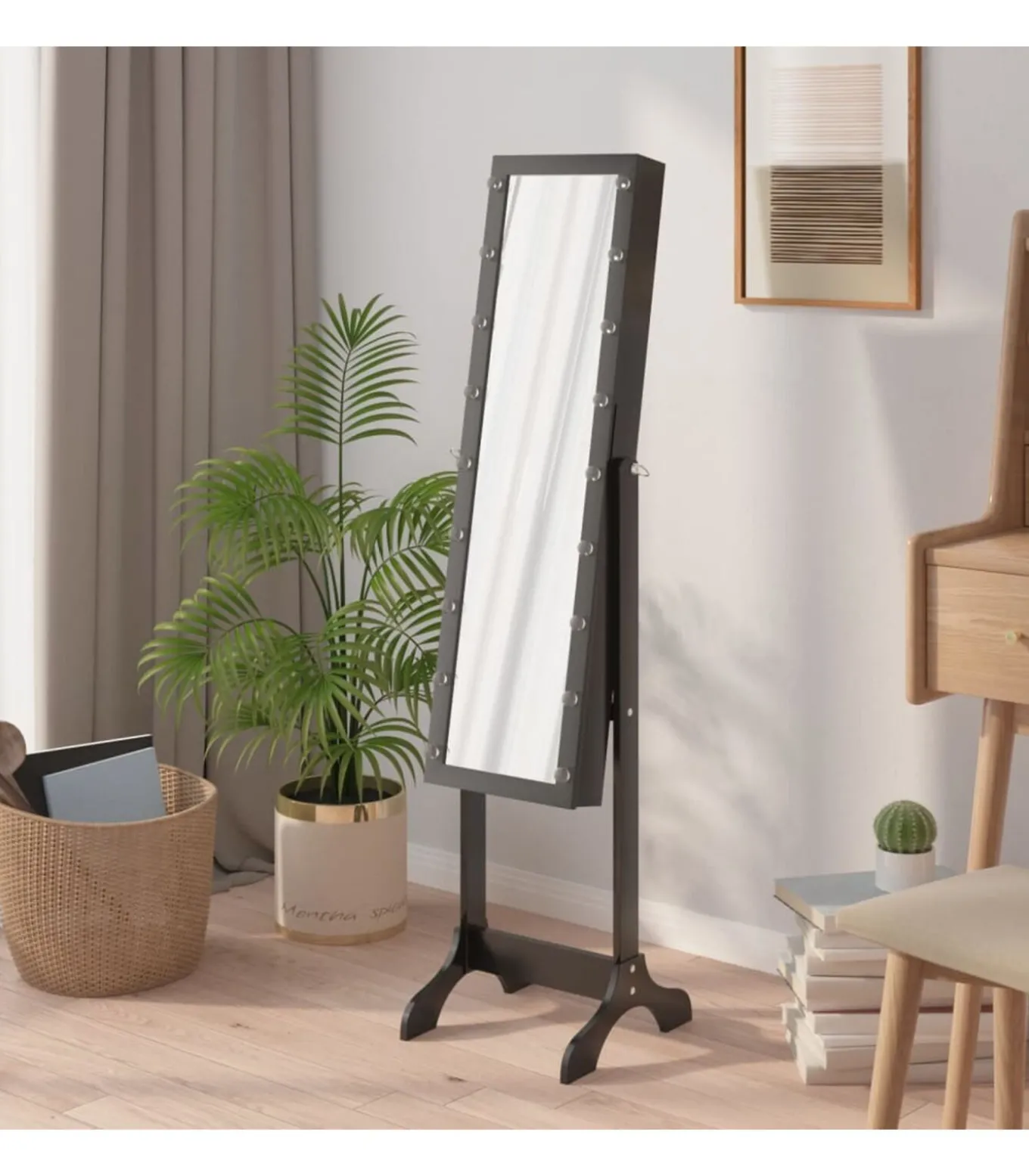 Spiegel vrijstaand met LED’s 34x37x146 cm zwart