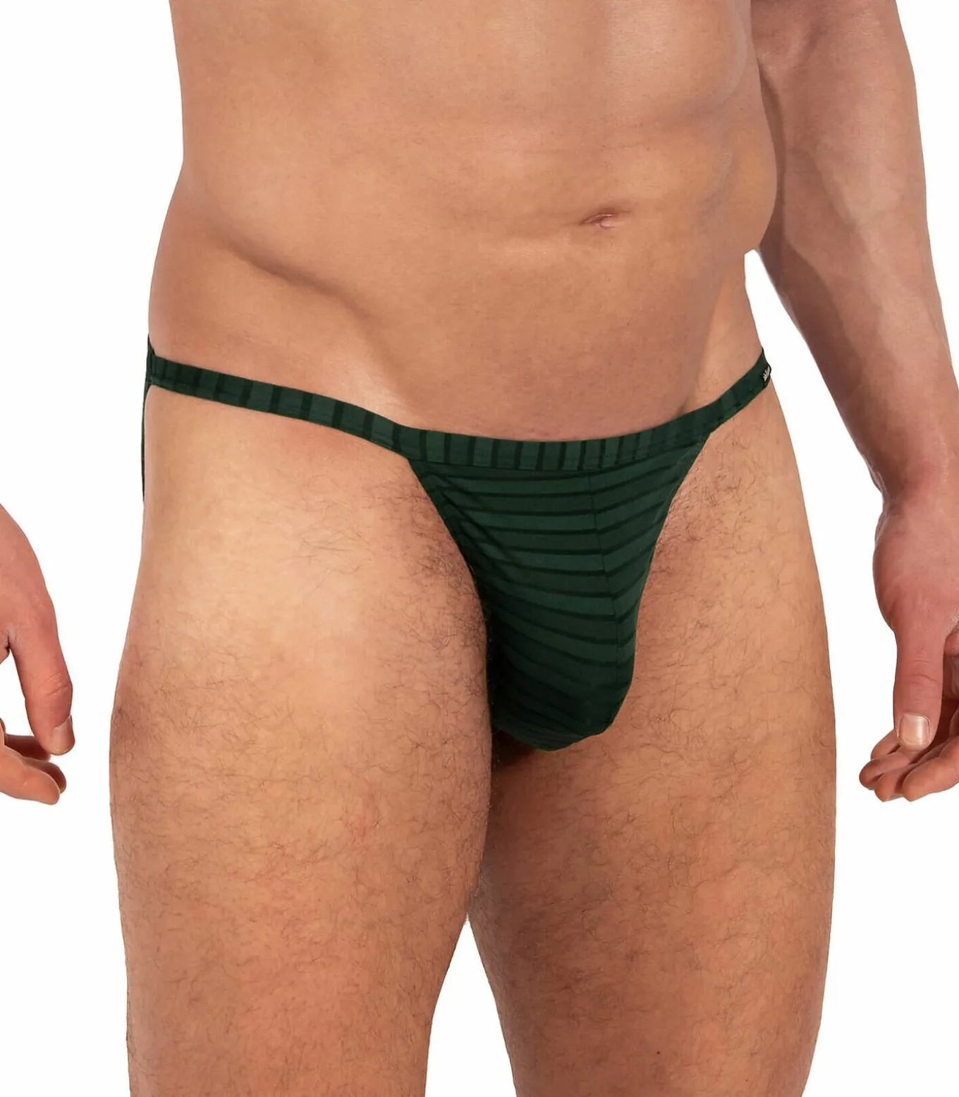 Mini ‘rio tanga’ snit met een hoog dijbeen. Aangenaam lichte polyamide stof met schaduwstrepen voor optimaal draagcomfort. Deze heerlijk soepele microvezel is extreem licht en zacht tegen de huid. De ademende stof zorgt voor een zeer aangenaam draaggevoel en garandeert die heerlijk ontspannen look. De genuanceerde gebreide strepen zorgen voor een strakke, mannelijke structuur. De gebruikte fijne jersey wordt in Italië geproduceerd volgens de Oeko–Tex–100 norm en genaaid in de fabrieken van Premium Bodywear in Duitsland.