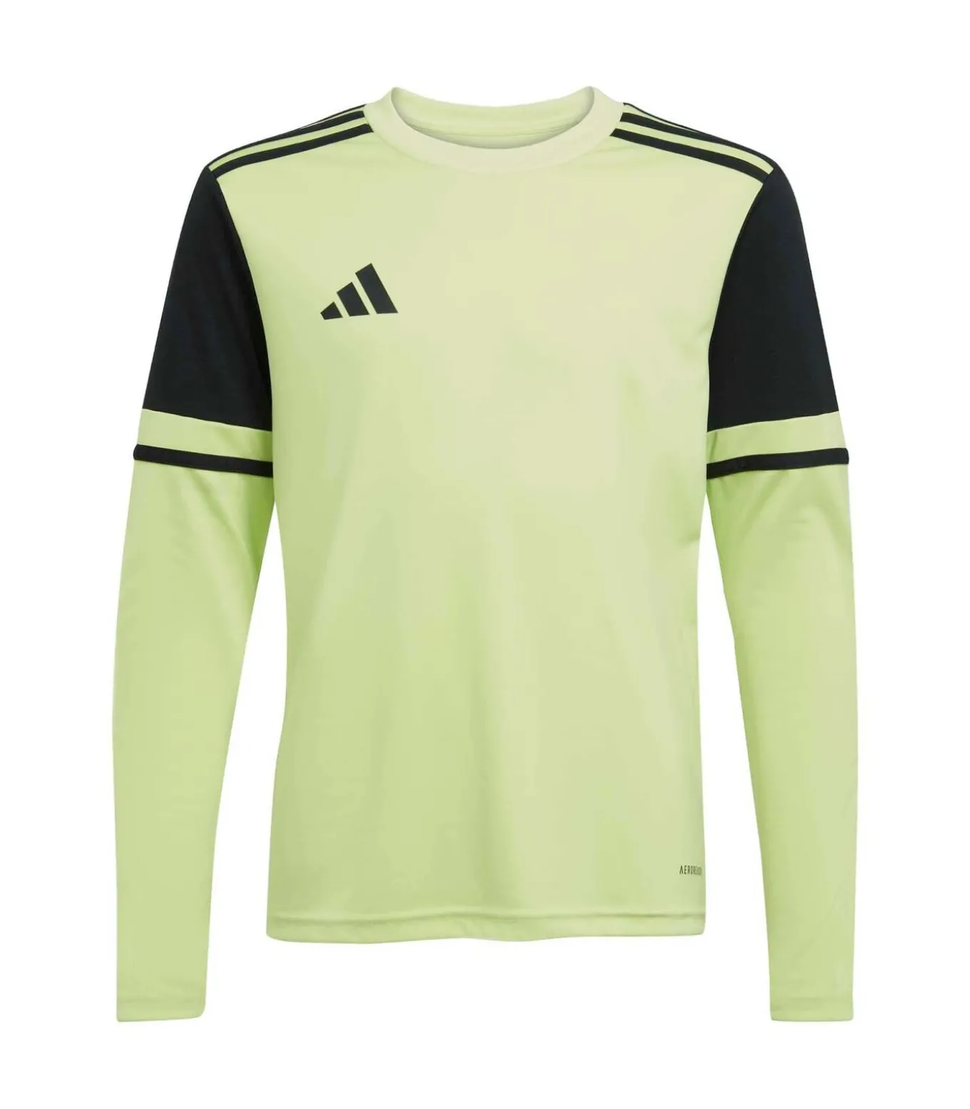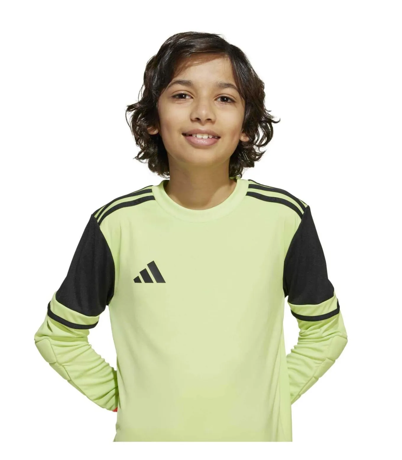 Kleur: Pulse Lime / Zwart Samenstelling: 100% gerecycled polyester Mouwen: Lang Halslijn: Ronde hals Pasvorm: Normaal Details: AEROREADY–technologie, gewatteerde ellebogen, geborduurd logo, 3–Stripes aangebracht Duurzaamheid: Volledig gemaakt van gerecyclede materialen om afval en het gebruik van niet–hernieuwbare bronnen te verminderen Gebruik: Ideaal voor jonge keepers die op zoek zijn naar bescherming, comfort en prestaties tijdens wedstrijden en trainingen