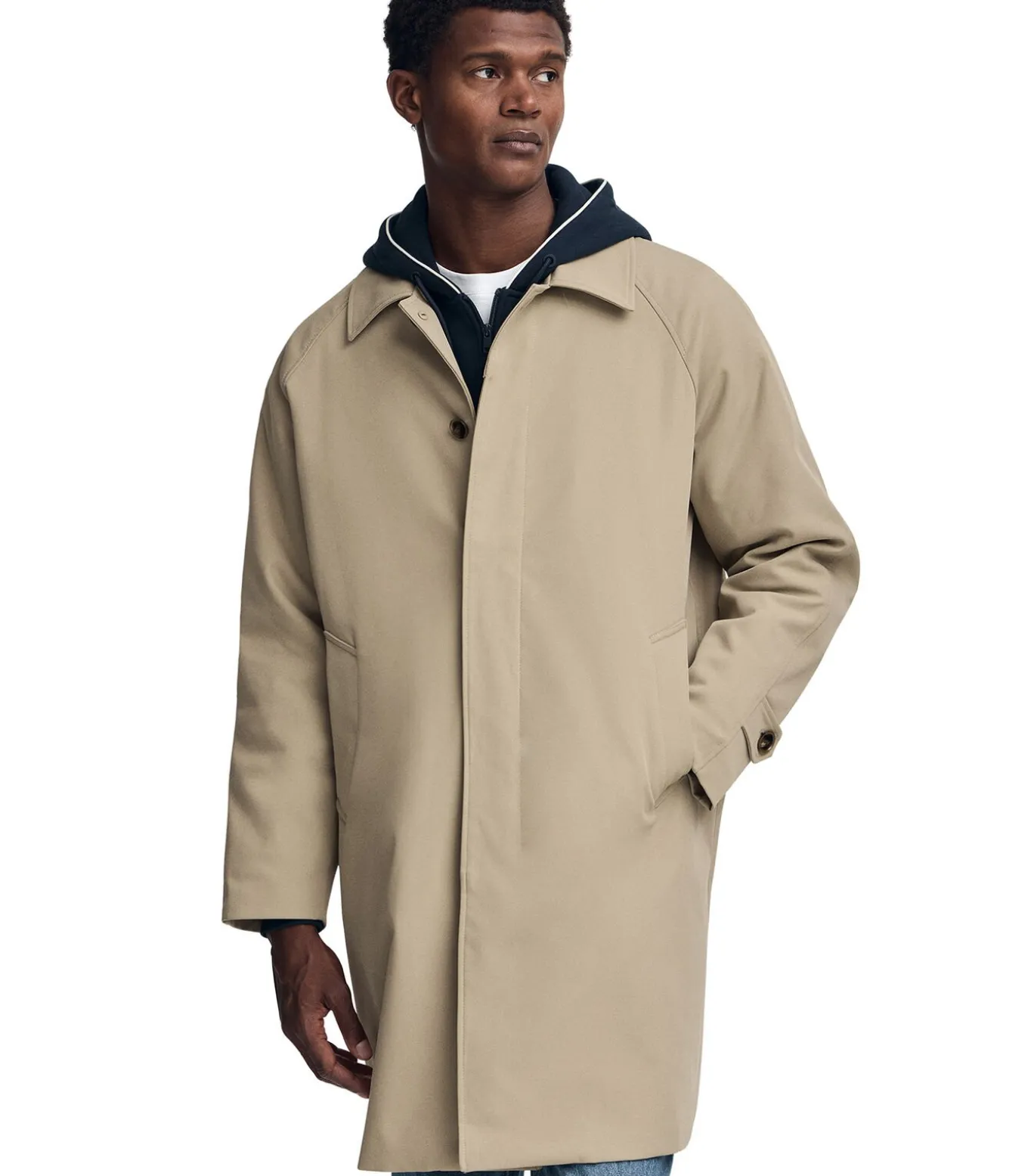 Lange herenmantel met knoopsluiting een uitneembaar deel binnenin en regular fit. De jas is voorzien van een praktische dubbele sluiting: rits en blinde knopen. Een functioneel kledingstuk met stijlvolle details, perfect voor de winter.