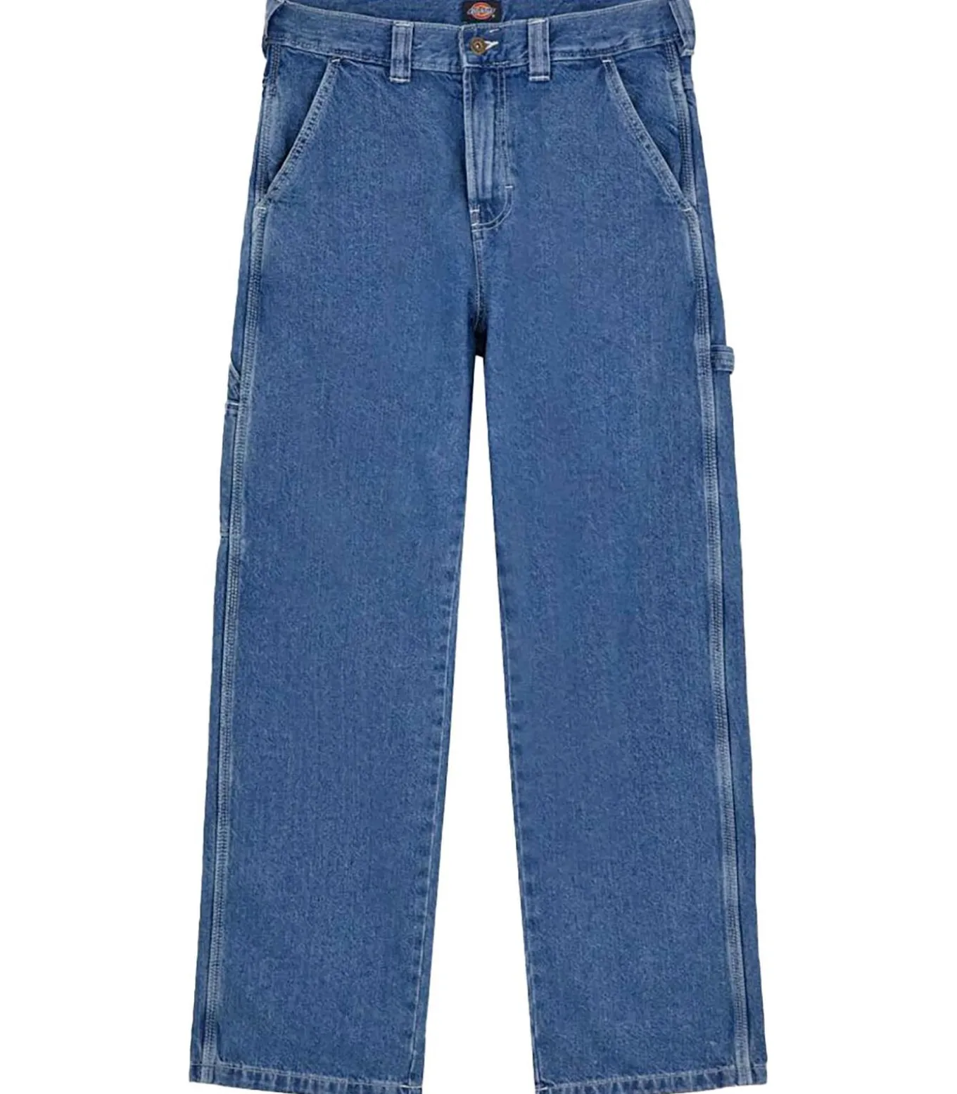 Kleur: Classic Blue Samenstelling: 100% katoen Lengte: Rechte pijpen Pasvorm: Los Sluiting: Knoop en rits Details: Deze broek is gemaakt van duurzaam katoenen denim met een stonewash finish en combineert functionaliteit met stijl met gereedschapszakken, een hamerlus en open achterzakken. De losse pasvorm versterkt de relaxte werklook. Gebruik: Ideaal voor een functionele, casual look, perfect voor dagelijkse activiteiten of vrije tijd