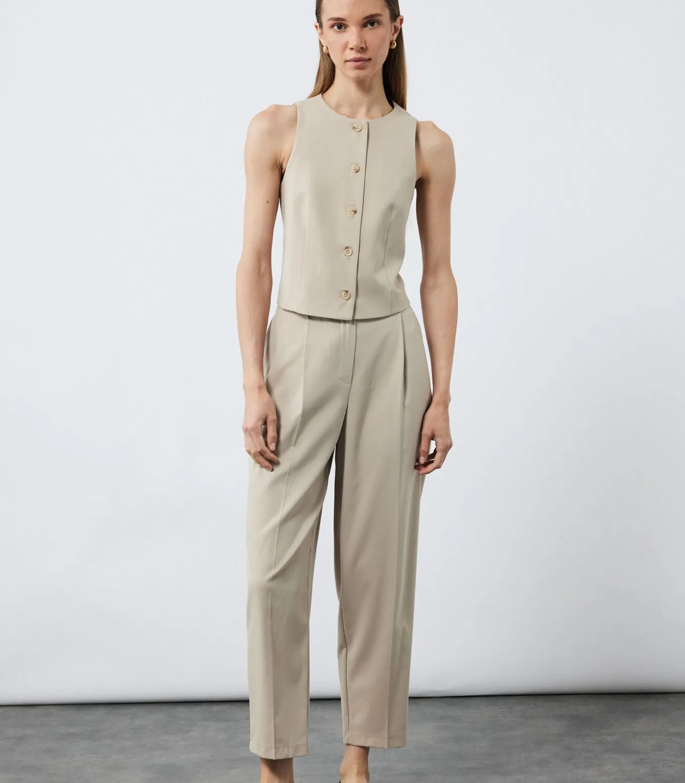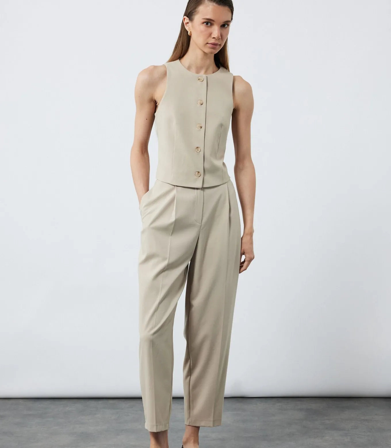 Deze verfijnde stofbroek met een ceintuur biedt een perfecte balans tussen elegantie en comfort. Het ontwerp met normale taille, cigarette pasvorm en handige zakken maakt het een veelzijdige keuze voor zowel casual als zakelijke combinaties. Combineer met een blouse en hakken voor een stijlvolle kantoordag of kies voor een basic T–shirt en sneakers voor een ontspannen look. Ideaal voor dagelijks gebruik of speciale gelegenheden.