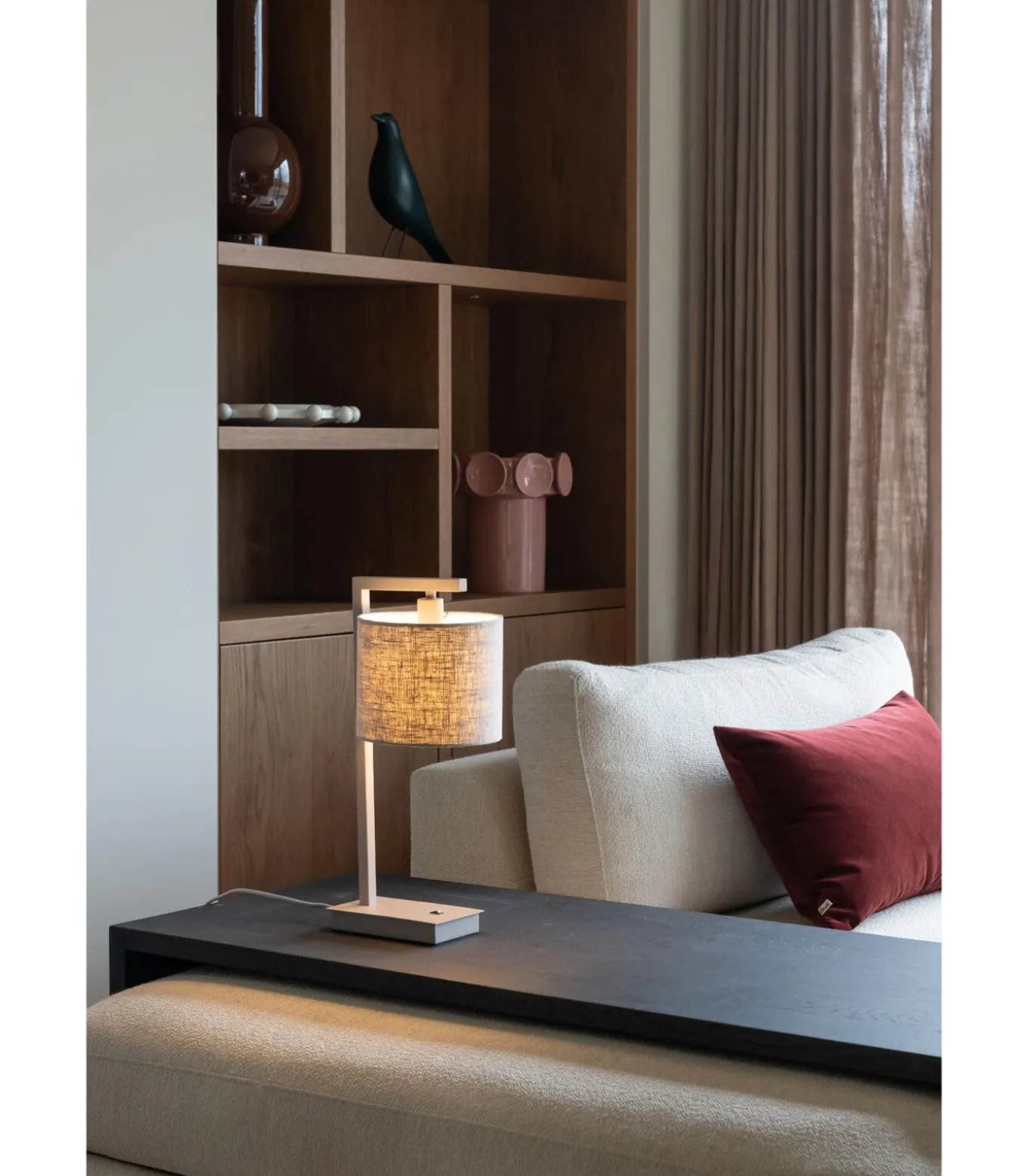 De Boston tafellamp combineert een strak, vierkant frame met een moderne, trendy afwerking en biedt keuze uit vier verschillende lampenkappen. Dankzij de handige schakelaar op de lamp voeg je moeiteloos stijl en functionaliteit toe aan je interieur. Perfect als sfeervolle eyecatcher op een bijzettafel, bureau of nachtkastje.