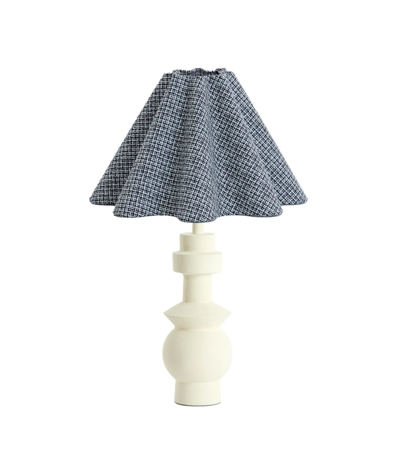 Deze tafellamp is een echte sfeermaker in je interieur. De slanke metalen voet in een zachte crèmekleur straalt rust en elegantie uit. Daarboven springt de opvallende kap eruit met zijn zwart–witte wave patroon en subtiele structuur van linnen. Samen vormen ze een stijlvolle blikvanger die past bij zowel een modern als Scandinavisch interieur. Met een hoogte van 46 cm en een diameter van 35 cm is de lamp perfect voor een dressoir, bijzettafel of nachtkastje. Het warme licht wordt mooi diffuus verspreid door de kap, terwijl de stevige voet zorgt voor een stabiele basis. Wat deze lamp extra fijn maakt? Je koopt hem direct als complete set. Dat betekent geen zoektocht naar de juiste kap of zorgen over de verhoudingen. Deze lamp is al perfect afgestemd, dus uitpakken, neerzetten en genieten! Dankzij de standaard E27–fitting kies je eenvoudig je eigen lichtbron, afgestemd op de sfeer die jij wilt creëren.