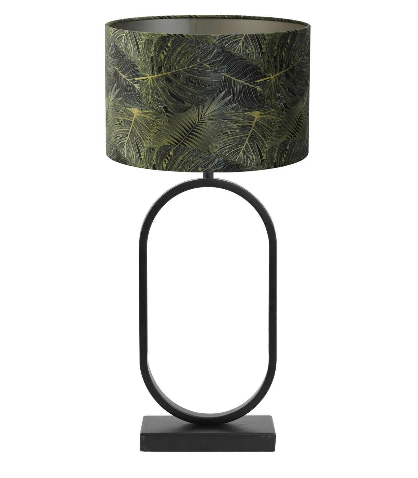 Op zoek naar de perfecte tafellamp inclusief lampenkap? De Jamiri is een moderne zwarte lampvoet van metaal en wordt geleverd inclusief cilinder lampenkap Amazone. Deze lampenkap heeft een stoere print met prachtige bladeren, gemaakt van een luxe stof. De mat zwarte lampvoet past in ieder interieur en is daarom een gegarandeerd tijdloze tafellamp in de woonkamer of als nachtlampje in de slaapkamer. Doordat de voet inclusief kap wordt geleverd, hoef jij je geen zorgen te maken of de verhoudingen wel kloppen. De kap past perfect op de ovale lampvoet. De totale afmeting van de tafellamp is 30x30x67 cm.