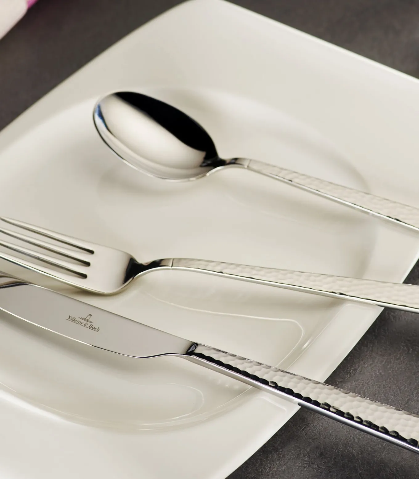 Expressief, hoogwaardig bewerkt en indrukwekkend mooi: Dat is de bestek–collectie Blacksmith van Villeroy & Boch, die met aantrekkelijke patronen en traditioneel, rustiek design overtuigt. Sinds 1748 staat Villeroy & Boch voor mooie tafelcultuur. Deze lepel geeft het servies bij elk gelegenheid een rustiek tintje. Vul uw Blacksmith bestek–set aan Natuurlijk geschikt voor de vaatwasser.
