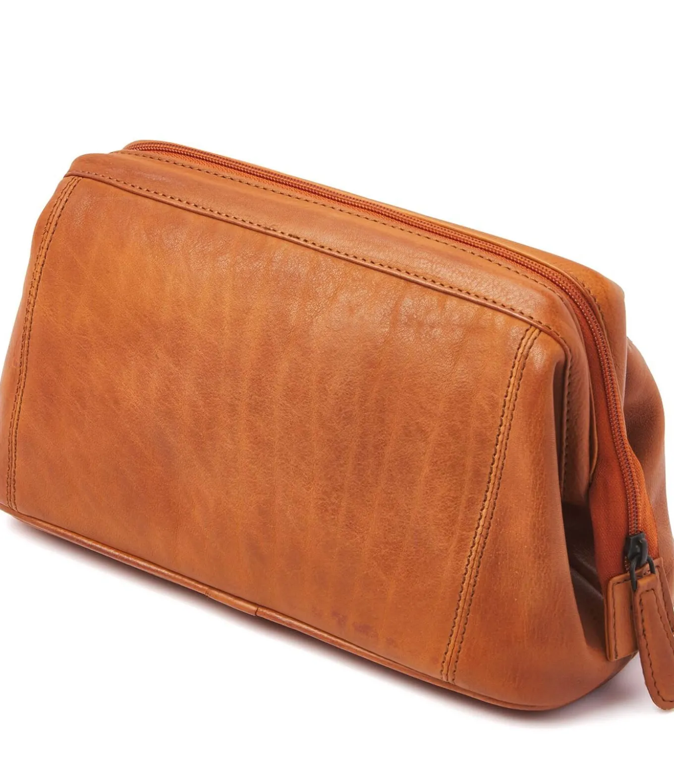 Deze mooie toilettas is gemaakt van zacht rundleder, wat hem erg fijn in gebruik maakt. Het perfecte artikel om mee te nemen tijdens een weekendje weg of je vakantie. De tas wordt veilig afgesloten met een rits aan de bovenzijde en beschikt over een beugel waardoor je deze erg ver open kunt zetten. Aan de binnenkant is een groot opbergvak, maar aan de zijkanten nog twee steekvakken voor kleinere spullen. Hierdoor heb je alles makkelijk en overzichtelijk bij.