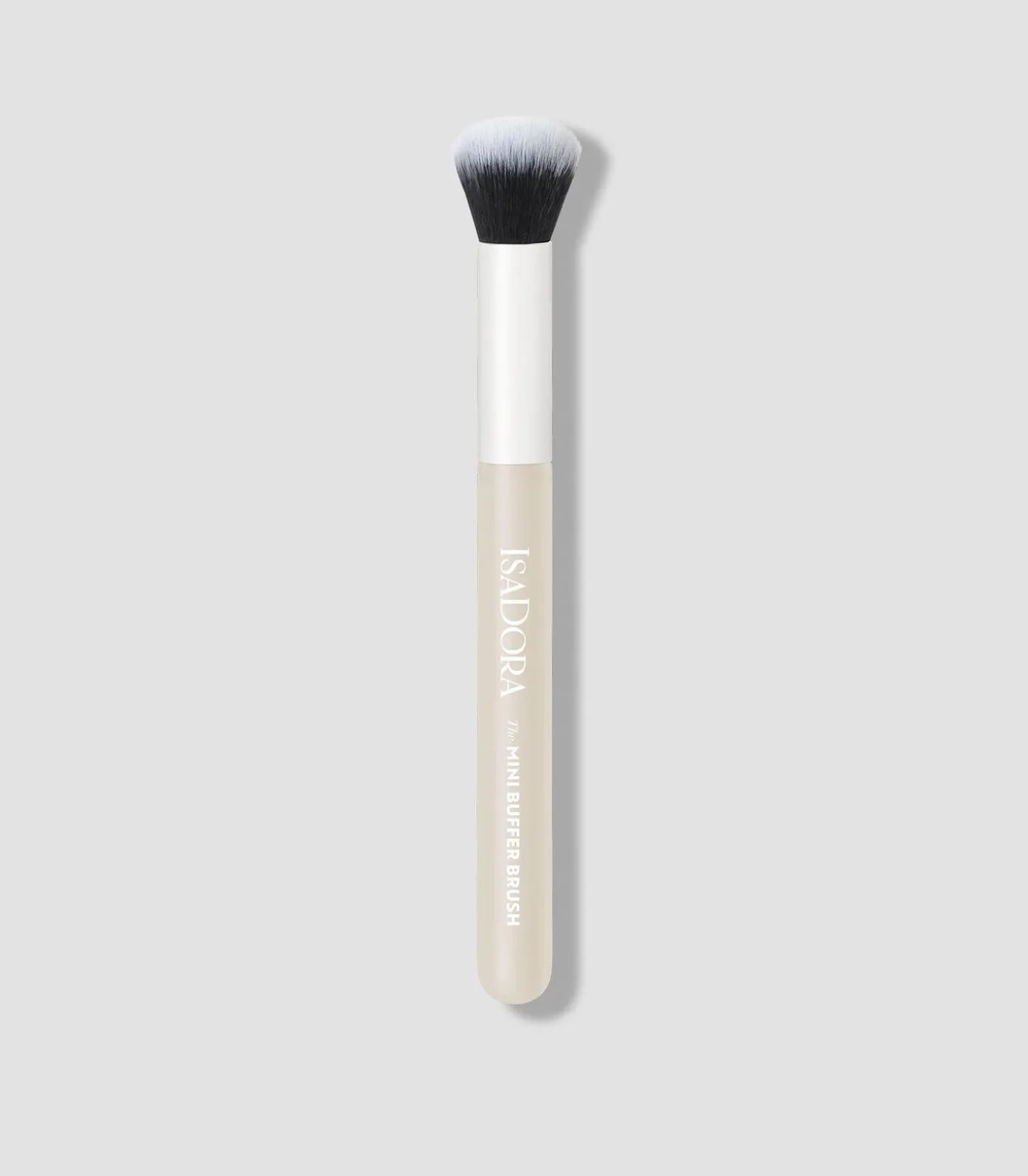 Een minibufferkwast met compacte, stevige haren. •Ideaal voor vloeibare en crème–concealers •Mengt en camoufleert perfect rond de ogen •Een snelle en gerichte applicatie om probleemzones aan te pakken •Perfect hulpmiddel om highlighters precies daar aan te brengen waar je wilt VEGAN–FRIENDLY