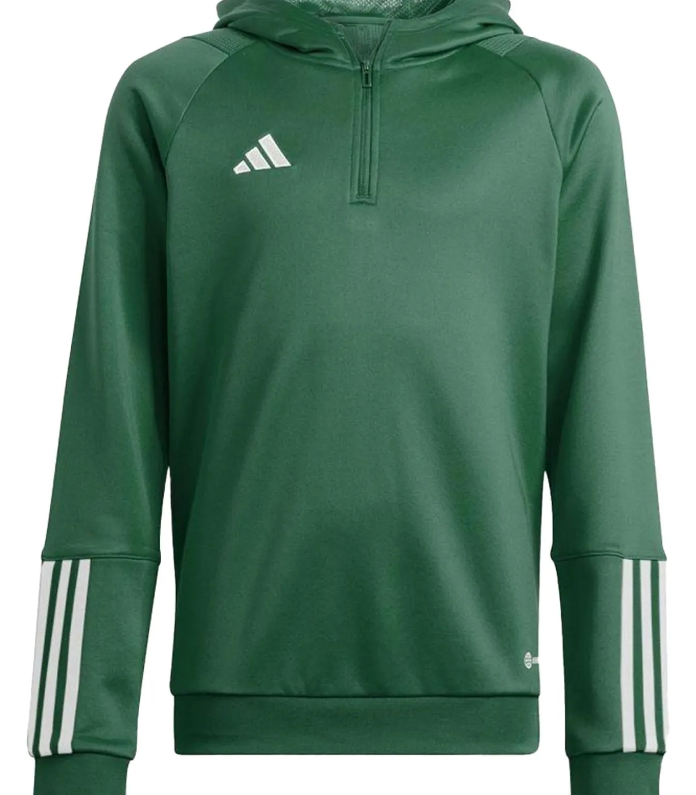 Adidas TIRO 23–Kleding met kraag – Groen, deze sporttrui is gemaakt van 100% recyclaatpolyester. De vulling bestaat uit gas. Het ontwerp wordt gekenmerkt door contraststrepen, het logo en tekst. Dit product beschikt over aeroready– en sneldrogend technologie. De randen zijn van ribben versterkt. De kraag kan opgenomen worden. Het kraaggedeelte is in de vorm van een kapitein. Het heeft langarmen en ribbeldeel op de manchetten. Dit is een truien voor reguliere gebruik. Het heeft een pull–over en vierkwartslus. Deze sporttrui is geschikt voor wedstrijden. De lengte bedraagt 6 jaar: 24 in. en 8 jaar: 25 in.