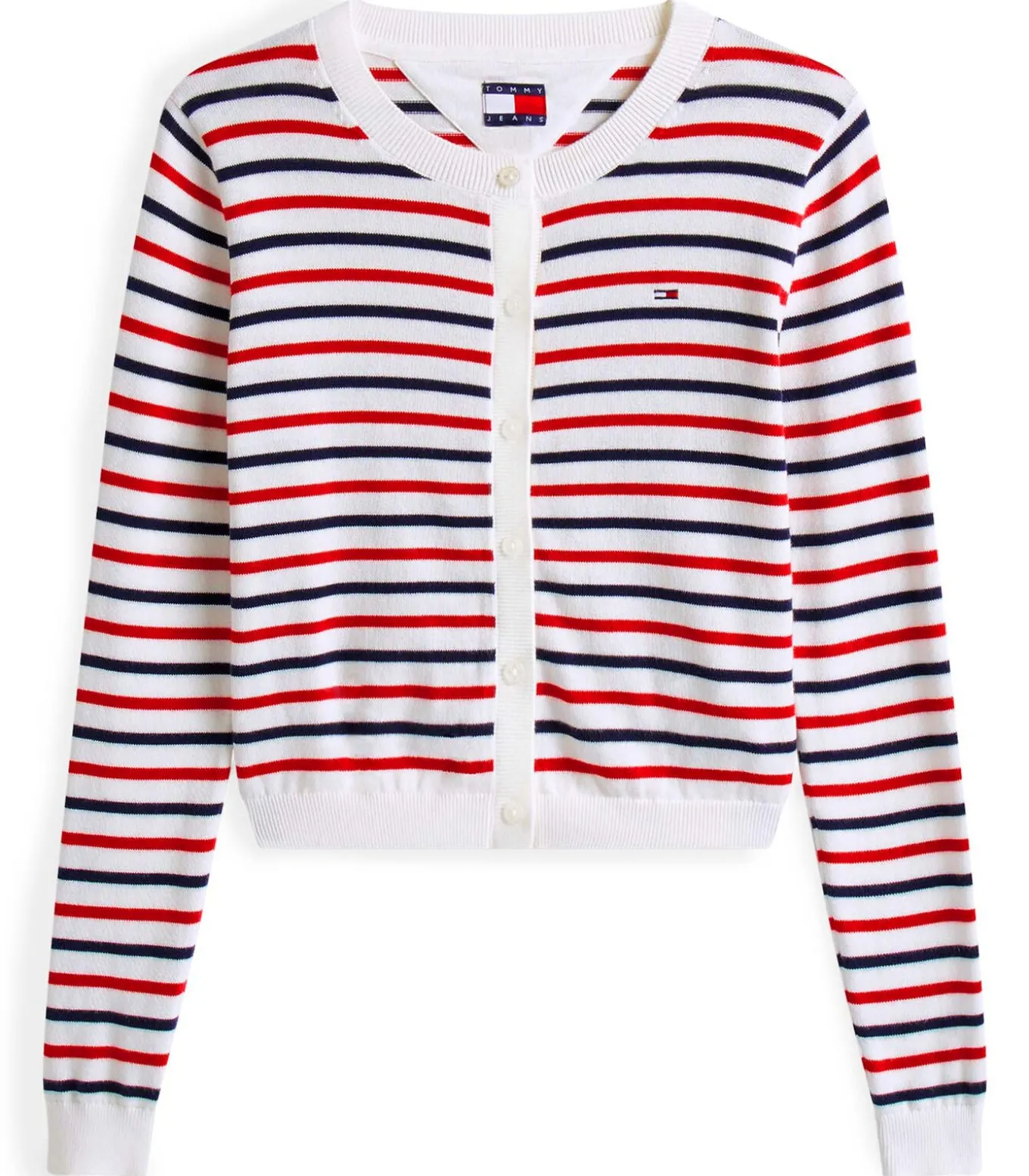 Kleur: Wit / Rood / Marineblauw gestreept. Samenstelling: 100% katoen. Mouwen: Lang. Halslijn: Ronde hals. Pasvorm: Slim fit. Sluiting: Knoopjes. Details: Gebreide, geribbelde kraag, manchetten en zoom, geborduurd logo op de borst. Gebruik: Elegant en veelzijdig vest, perfect om over een T–shirt of overhemd te dragen voor een casual maar verfijnde look.