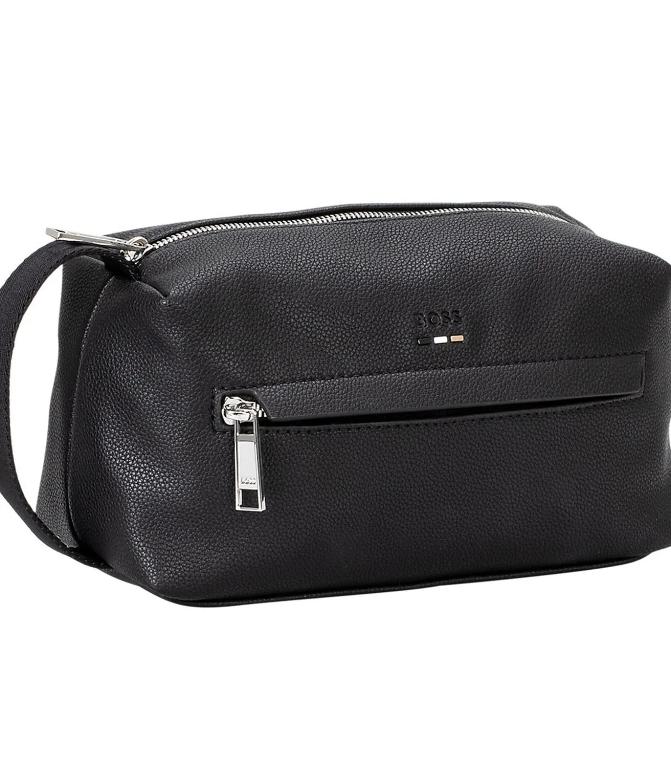 Toilettas voor heren van het merk BOSS. Gemaakt van onderhoudsvriendelijk synthetisch materiaal, hoofdvak en vak aan de voorkant met ritssluiting, subtiel logo in reliëf