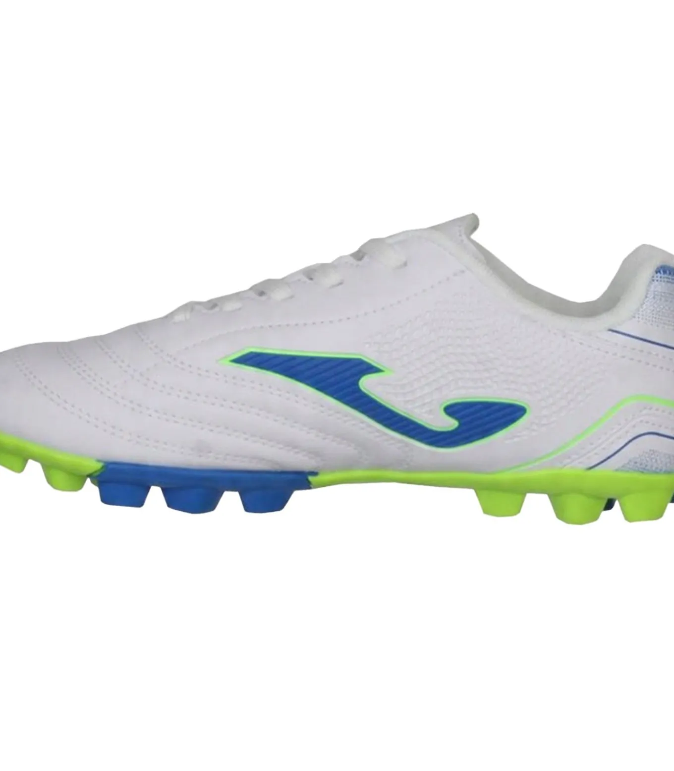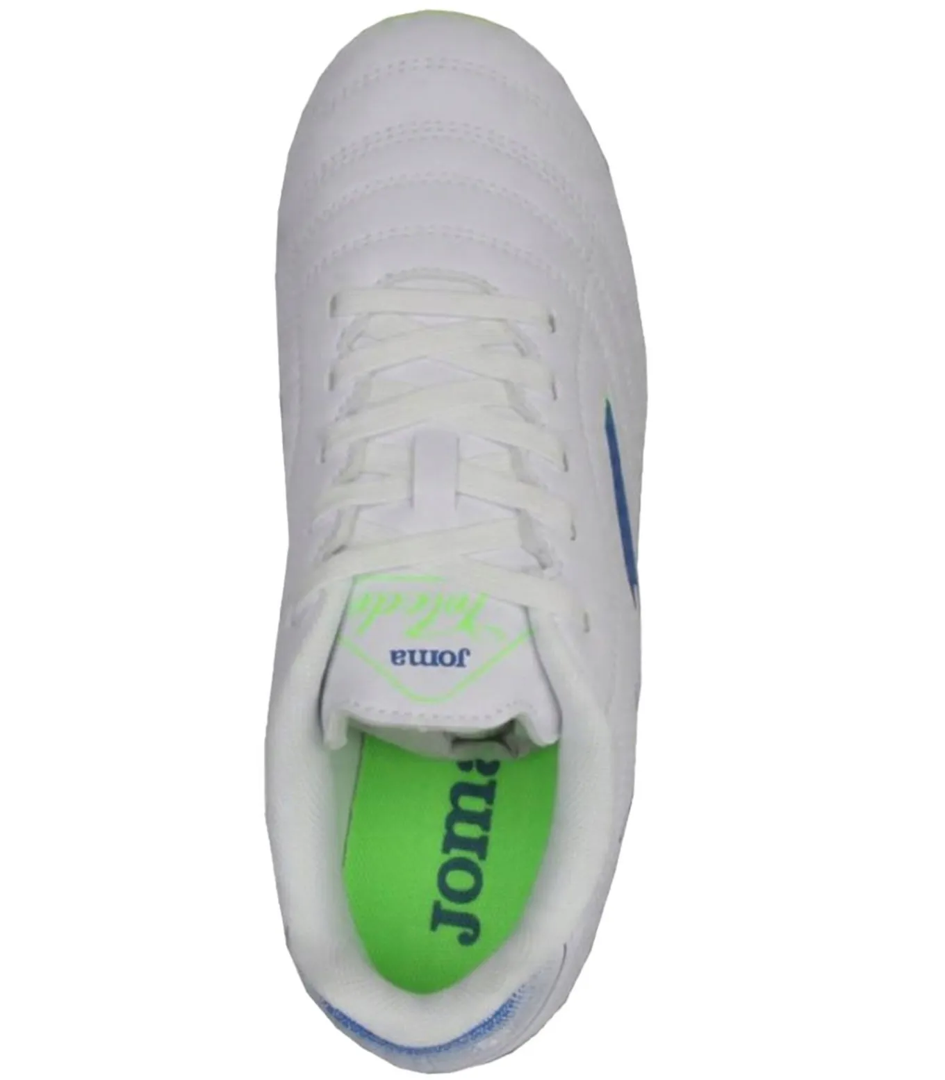 Joma–merk toledo boots in wit. Het bovendel bestaat uit kunststof. De buitenzool is slijtvast, duurzaam en voorzien van rubber omhulling met grip. Het heeft vijf ogen en een Exo counterhak. Het ontwerp bevat contrastdetail, logo en tekst in ronde stijl. Het is geschikt voor stevige ondergrond en gesloten met vetersluiting.