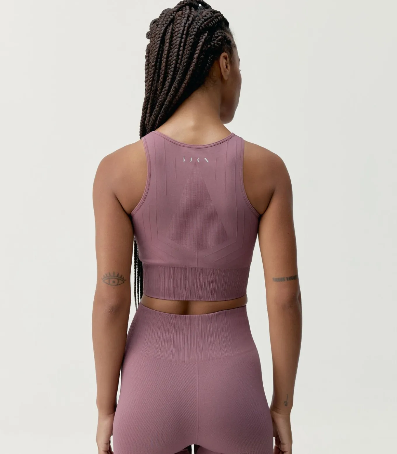 Naadloze crop top met medium hoge ondersteuning. “Fit_Tech” stof met shaping–effect. Compact en lichtgewicht om al uw bewegingen te vergemakkelijken. Zeer elegant ribontwerp aan de voor– en achterkant. Goed passende medium band met decoratief ontwerp. Inclusief verwijderbare pads. Duurzame vezels4–weg stretchstof Hoge zonnebeschermer Zacht aanvoelend Antistatisch Antibacterieel Uitneembare pads