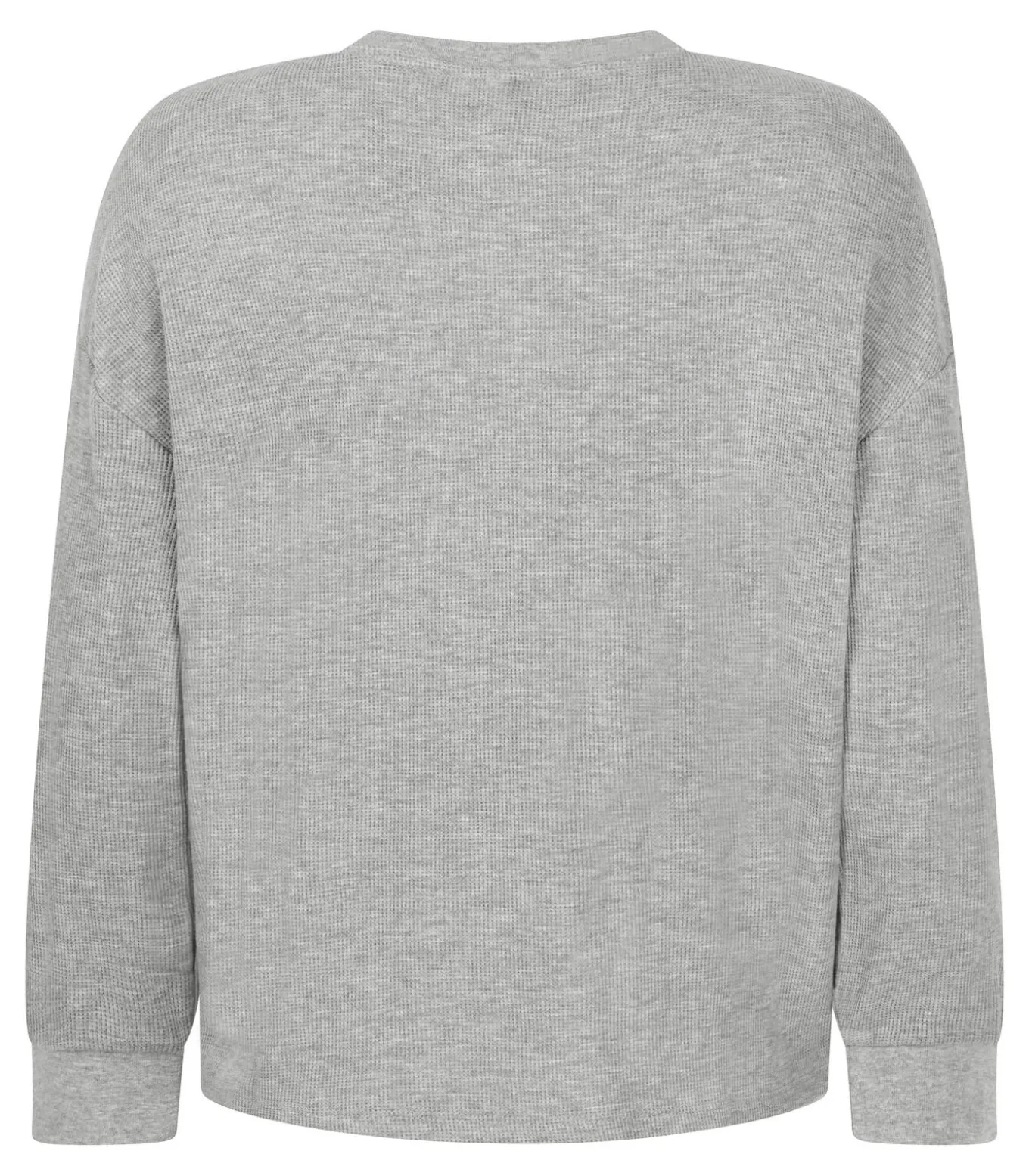 Deze warme top biedt de perfecte combinatie van comfort en casual cool. Het heeft een klassieke ronde hals, lange mouwen en een halve knoopsluiting aan de voorkant. Het is een gemakkelijk item dat textuur en warmte aan je outfits toevoegt. Ideaal om thuis in te loungen. Combineer hem met de bijpassende broek voor een complete look.