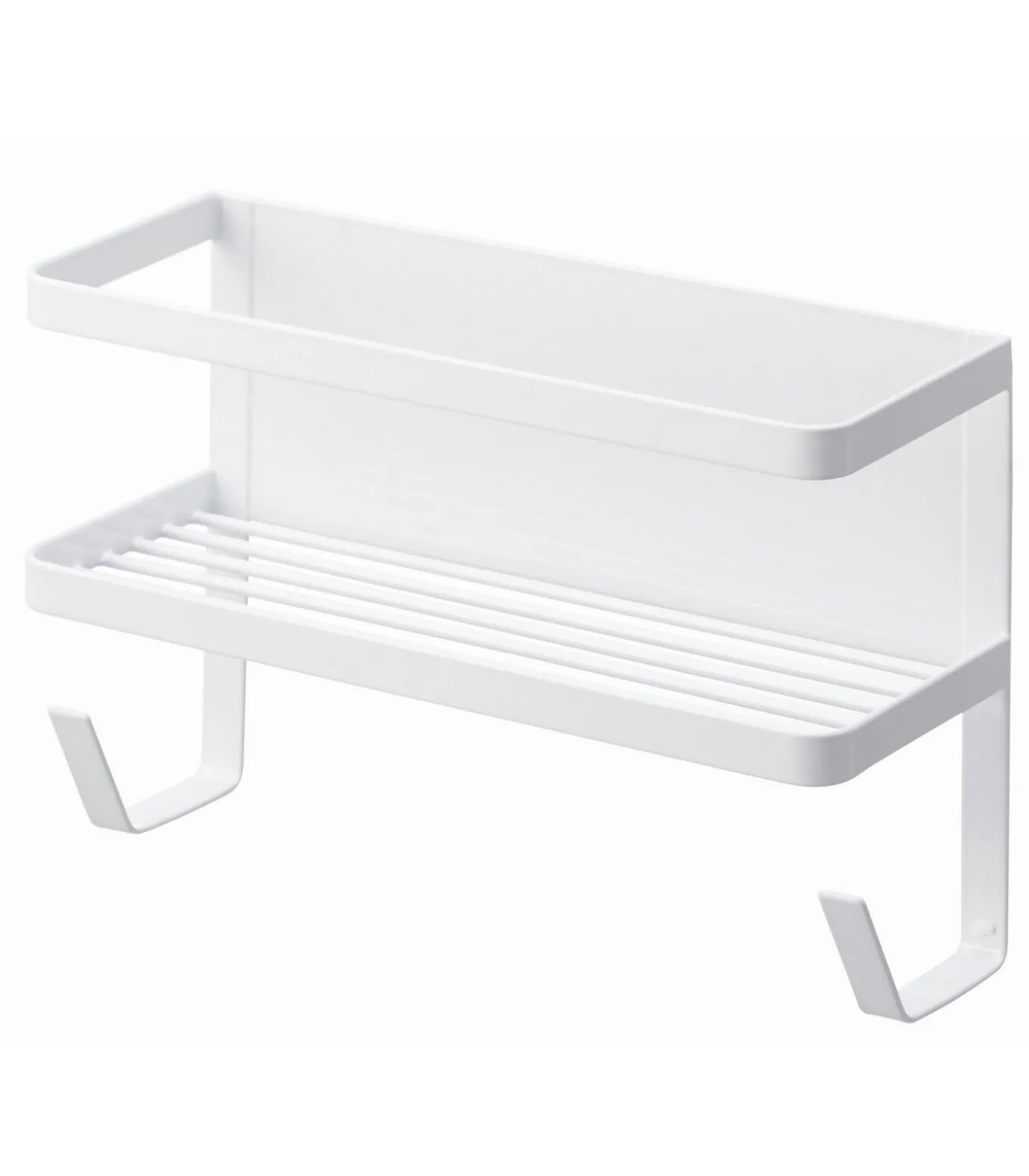 Dit wasrek van Yamazaki is magnetisch en eenvoudig te bevestigen aan een wasmachine of ander metalen oppervlak. Het biedt praktische opbergruimte voor was– of badkamerbenodigdheden op het rooster, dat is uitgerust met twee vaste haken. Daarnaast beschikt het rek over een verplaatsbare haak, ideaal voor het ophangen van kleine gebruiksvoorwerpen die je snel bij de hand wilt hebben.