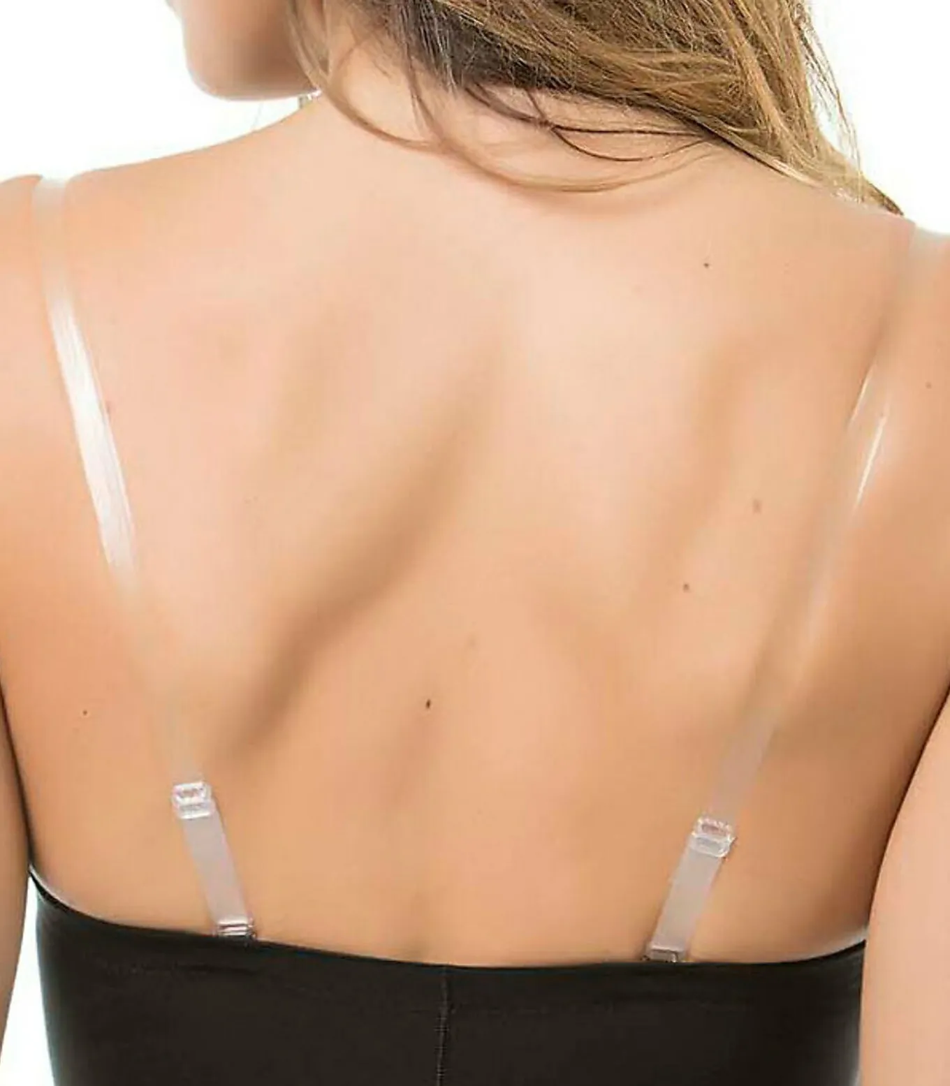 Set van 2 transparante verstelbare bandjes die onzichtbaar over uw bandeau bh passen. De haken en regelaars zijn ook transparant.[Set bandjes wordt apart verkocht. De bh die het model op de foto’s draagt is niet inbegrepen]