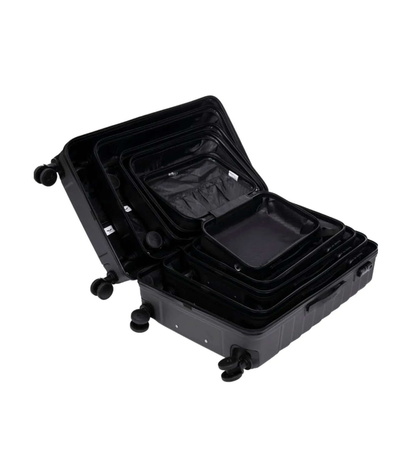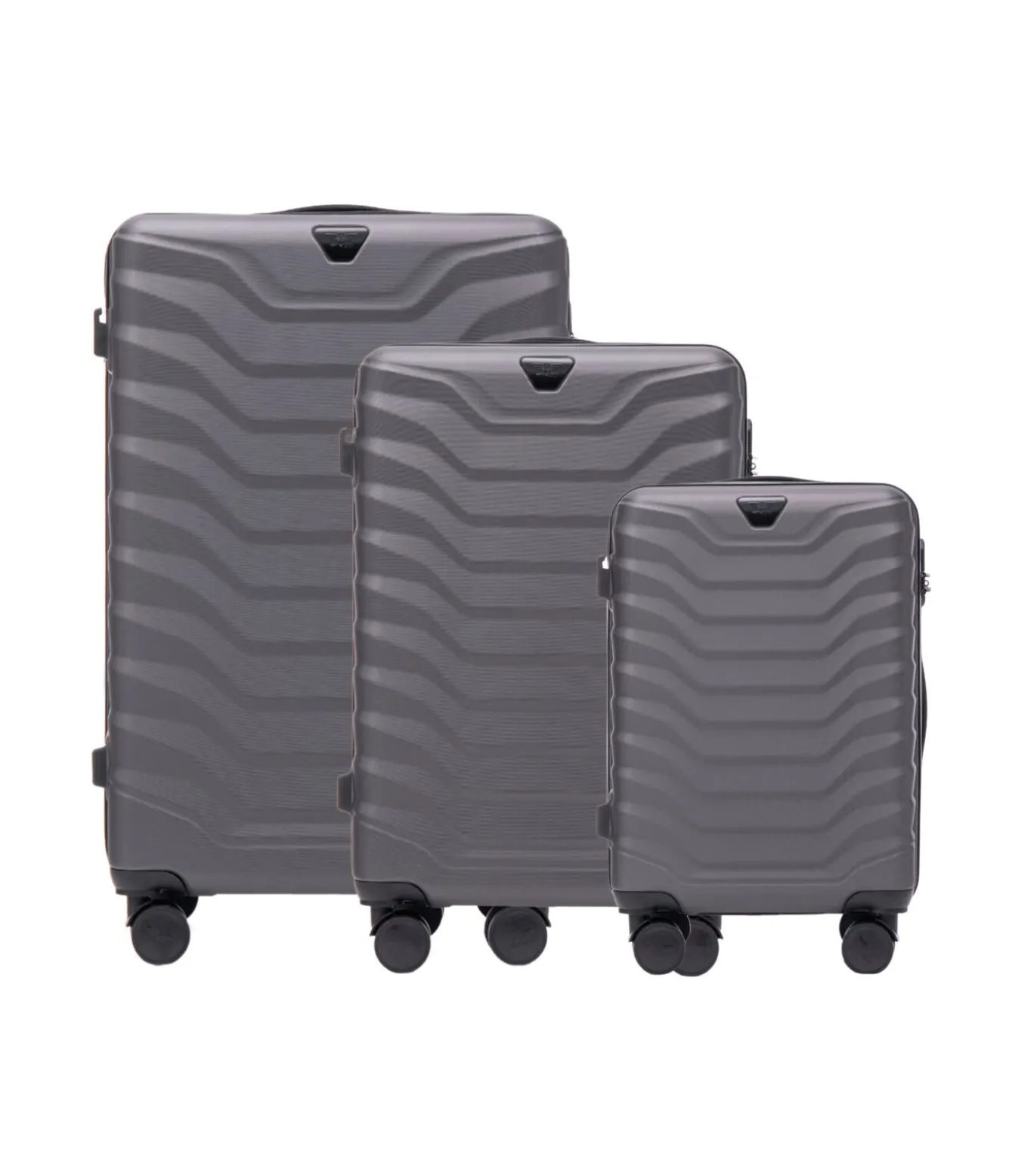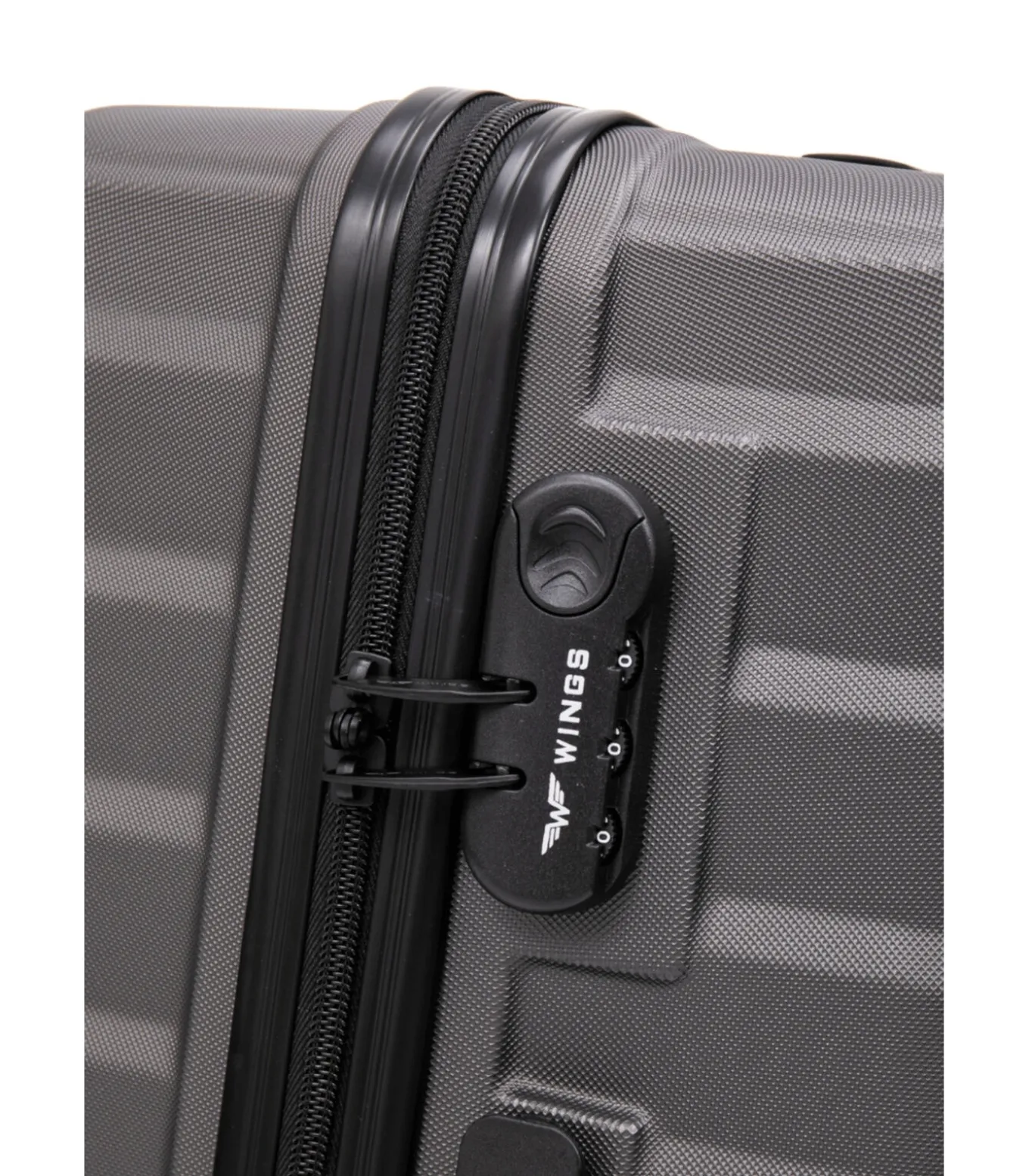 De WINGS PEAFOWL kofferset bestaat uit drie verschillende maten hardschalige koffers in de maten S, M en L en is daarom ideaal voor elke reis – van weekendtrips tot langeafstandsreizen. Alle koffers zijn gemaakt van ABS+ (acrylonitrilbutadieenstyreen) van hoge kwaliteit en zijn extreem robuust, krasbestendig, waterafstotend en bijzonder gemakkelijk schoon te maken.Elke koffer is uitgerust met vier dubbelgelagerde wielen die 360 graden kunnen draaien en moeiteloos en geruisloos manoeuvreren mogelijk maken. Een zwarte, telescopische handgreep van duraluminium kan traploos worden versteld en zorgt voor een hoge mate van comfort bij het hanteren – ongeacht lichaamsgrootte of reissituatie.Het volledig gevoerde interieur heeft een tweedelig hoofdvak met ritssluiting, een extra binnenvak voor kleine spullen en elastische dwarsbanden om de bagage vast te zetten en netjes te houden. De zwarte binnenbekleding geeft de koffer een elegante en uniforme look.Een goed doordacht detail is de haak aan de zijkant, die gebruikt kan worden om kleine tassen of accessoires aan op te hangen – ideaal voor langere reizen met meerdere stuks bagage. De driedelige set kan in elkaar worden opgeborgen om ruimte te besparen, waardoor opbergen thuis of in een hotel veel gemakkelijker wordt.De buitenafmetingen van de koffers zijn ca. 75 × 48 × 30 cm voor maat L, ca. 66 × 43 × 26 cm voor maat M en ca. 55 × 38 × 22 cm voor maat S. Maattolerantie: +/– 2 cm. Het volume is ongeveer 97 liter (L), 63 liter (M) en 38 liter (S).De WINGS PEAFOWL kofferset combineert modern design met grote geschiktheid voor dagelijks gebruik en is een betrouwbare keuze voor stijlbewuste en veeleisende reizigers.