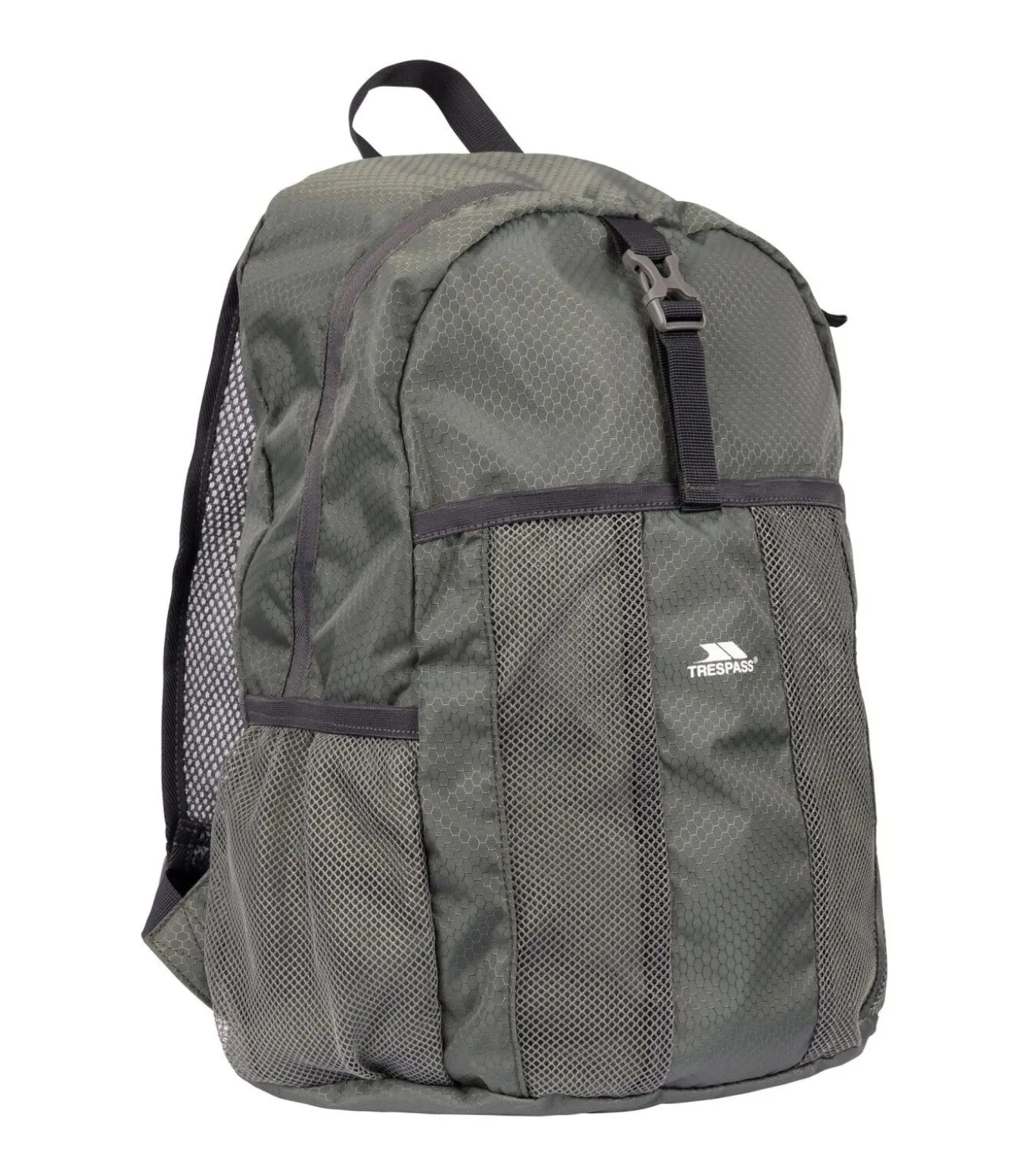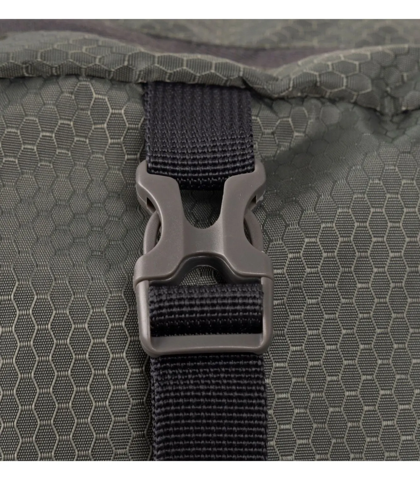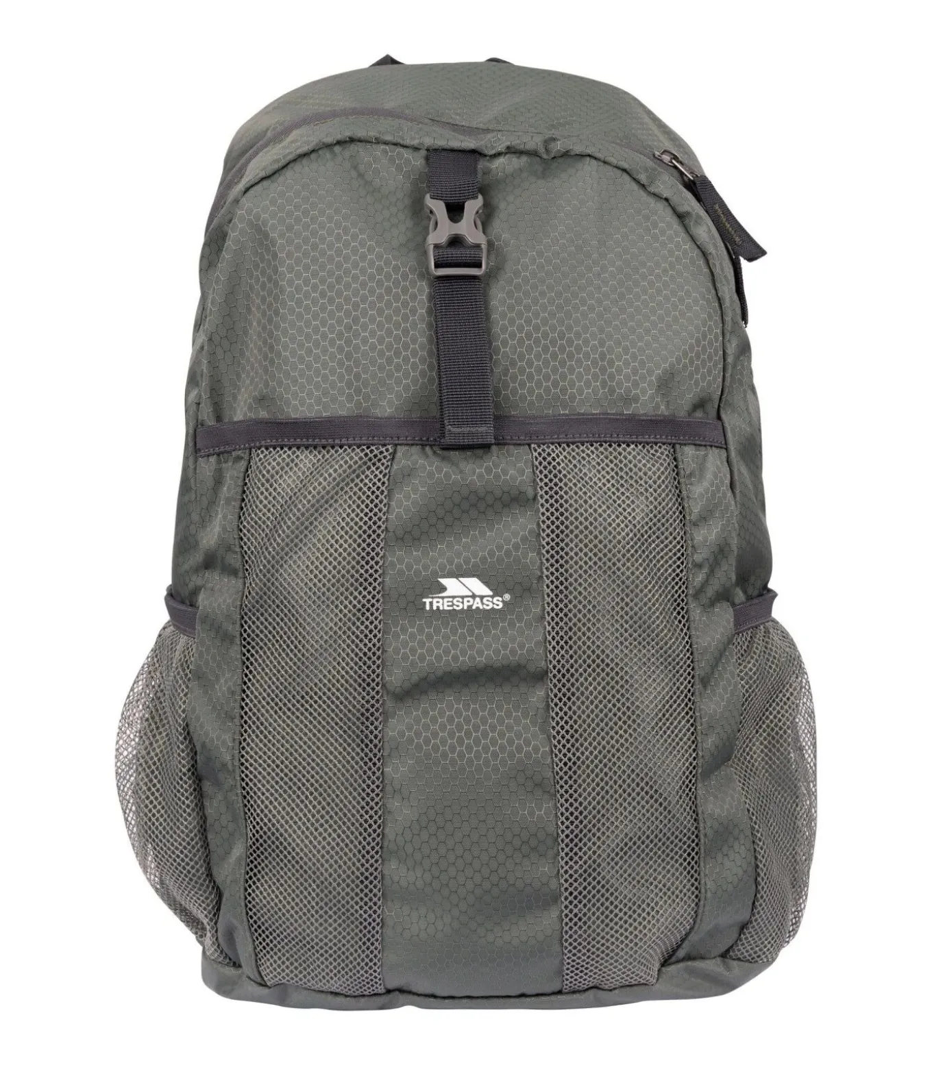 De Trespass Turzo Packaway rugzak is een veelzijdige en duurzame optie voor het vervoeren van je benodigdheden. Deze rugzak is gemaakt van 100% polyester met een PU–coating en heeft een lichtgewicht maar stevige constructie. Met een lengte van 20 cm, een breedte van 16 cm en een diepte van 8 cm heeft de rugzak een ruime inhoud van 22 liter voor al je spullen. De rugzak is ontworpen met het oog op gebruiksgemak en heeft twee gaasvakken en een voorvak, zodat je je spullen efficiënt kunt organiseren. Het hoofdvak biedt voldoende ruimte voor het opbergen van grotere spullen, terwijl de verstelbare schouderriem en het handvat comfortabele draagopties bieden. Deze rugzak is compact en gemakkelijk mee te nemen en kan gemakkelijk worden opgeborgen als je hem niet gebruikt, dankzij het innovatieve ontwerp met een plastic clip. Het honingraatpatroon en de logodetails voegen een vleugje stijl toe, terwijl de ritssluiting zorgt voor een veilige sluiting en gemakkelijke toegang tot je spullen. Met zijn duurzame en lichtgewicht stoftechnologie is de Trespass Turzo Packaway Backpack een ideale keuze voor outdooravonturen, reizen of dagelijks woon–werkverkeer, met een perfecte mix van functionaliteit en gemak.