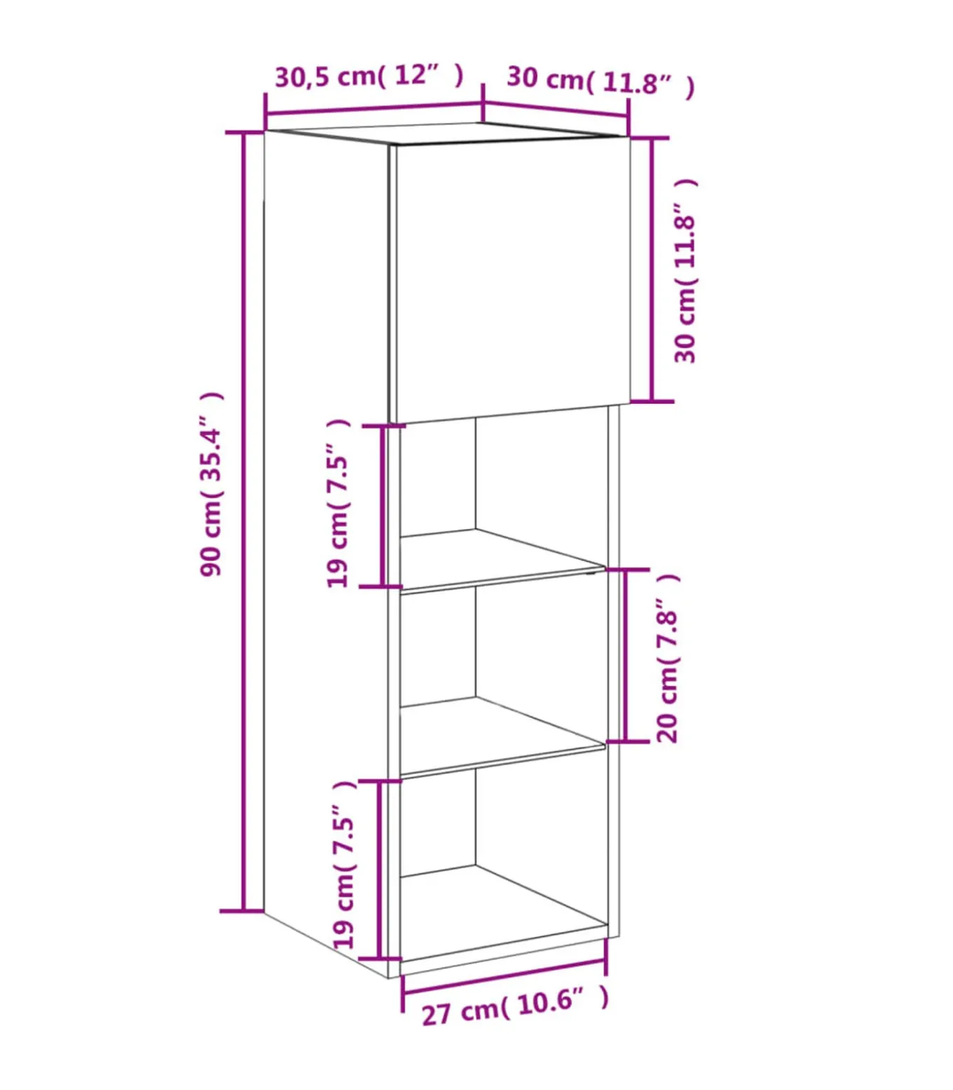 Afmetingen: 30,5 x 30 x 90 cm (L x B x H)