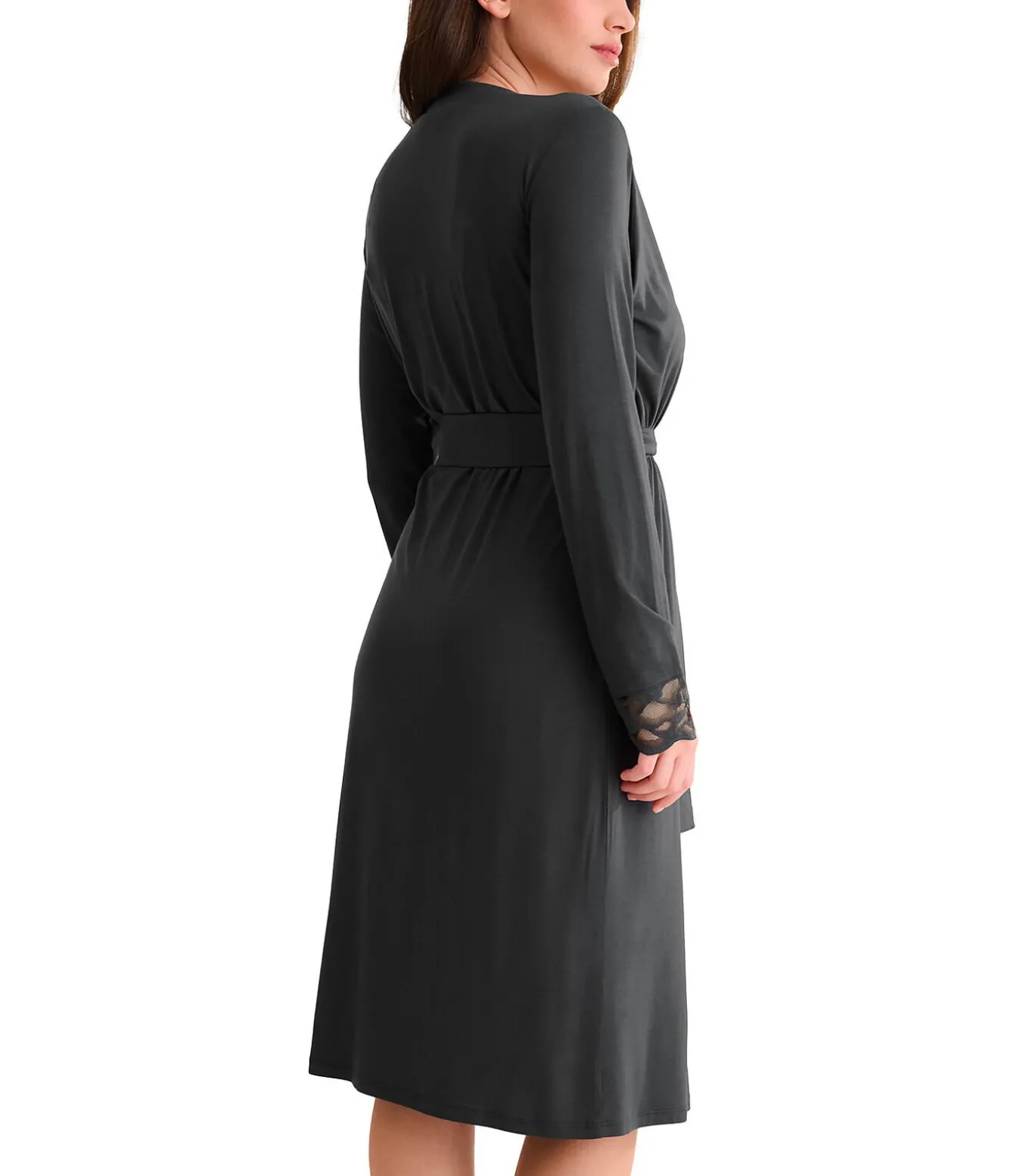 Negligé met lange mouwen in een comfortabele, elegante snit. Kanten details op de mouwen en praktische ceintuursluiting. Lengte ca. 100 cm.