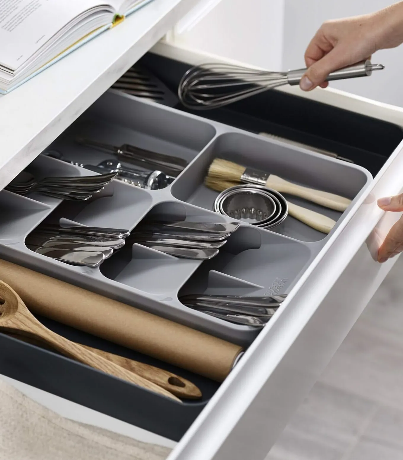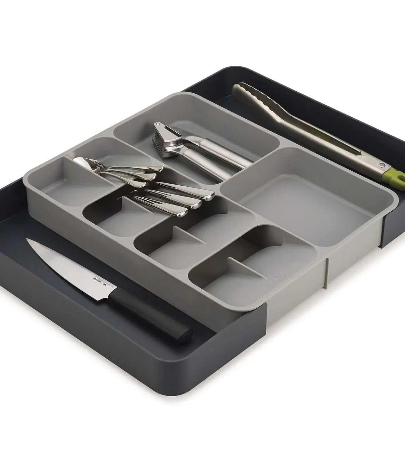 Met de Joseph Joseph Bestekorganiser Uitschuifbaar DrawerStore heb je al jouw bestek netjes in de la liggen. De bestekorganiser heeft 2 grote en 8 kleinere vakken waarin je al jouw bestek kwijt kan. Dit geeft een georganiseerde look aan jouw keuken.