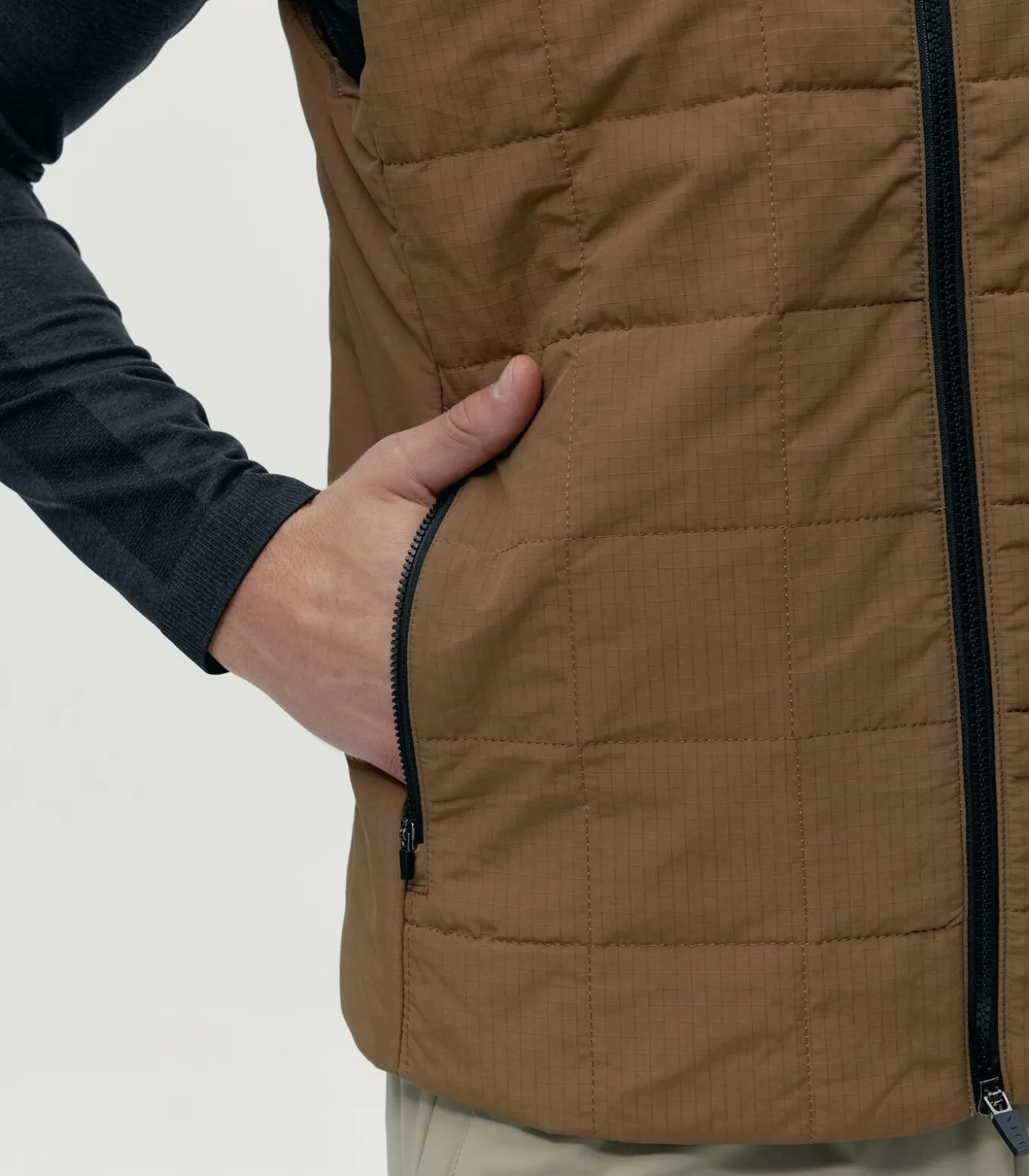 Vest gemaakt van Rip_Stop stof, resistent, zacht en droog aanvoelend. Veganistische vulling, met oversized vulling met rasterontwerp om warmte beter vast te houden, lichtgewicht, windafstotend en thermische isolatie. Centrale ritssluiting met dubbele schuifregelaar. Zijzakken met ritssluiting voor extra veiligheid. Windstopper • Duurzame vezels • TPU–membraan • Droge aanraking