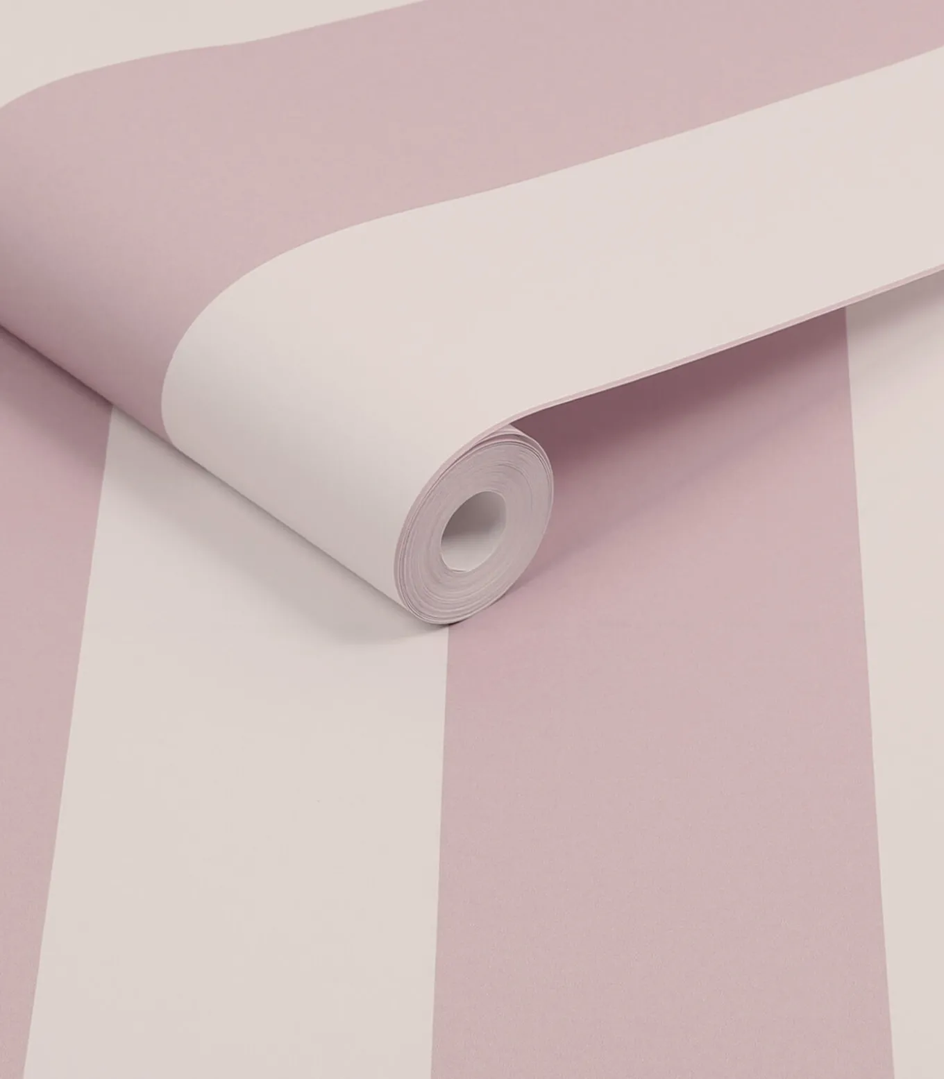 Deze klassieke, brede streep is een iconisch behangpatroon, tijdloos en toch eigentijds. De strepen komen tot leven in een prachtige, warme roze tint die perfect wordt aangevuld door een warme neutrale streep. Gedrukt op een matte ondergrond voor een eigentijdse uitstraling.