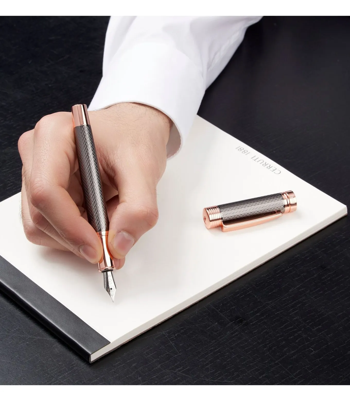 Maak kennis met deze nieuwe editie van de CERRUTI 1881 “Zoom” pen – een moderne draai aan een tijdloze favoriet. Met een herwerkte gegraveerde textuur en metalen afwerking, kies uit onze 3 kleuropties : Pistool & Chroom, Pistool & Roségoud, of Chroom & Pistool. Elk verkrijgbaar in balpen, roller en vulpenstijlen, brengt deze diamantgegraveerde editie een extra vleugje luxe aan deze markeerfavoriet. Dimensions: DIA.12/H.136 mm, Material: Brass,Gun plating,Rose Gold plating
