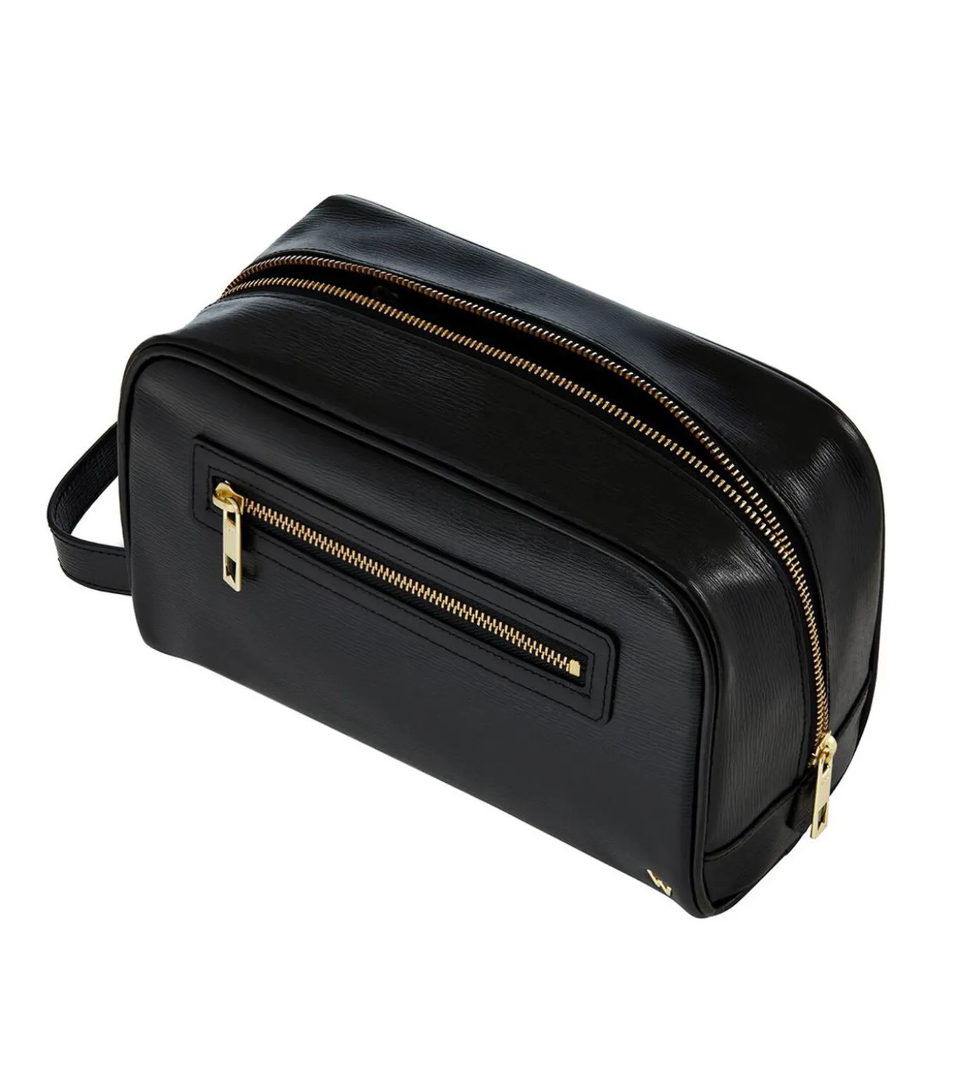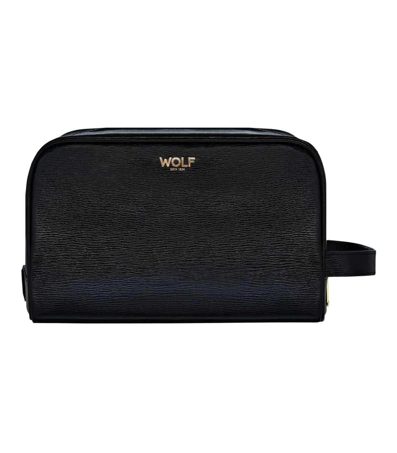 De ‘W’ collectie; strak, zwart, reliëfleder, met accenten van goud op lederen portemonnees, zakelijke accessoires en een toilettas. Zuivere verfijning komt voort uit een klassiek ontwerp met de kenmerkende aandacht voor detail van WOLF. Bewaar je toiletartikelen in stijl met de W Logo toilettas. Met een verfijnd ontwerp biedt deze ruime toilettas een buitenvak met ritssluiting, een binnenvak en een draaggreep. Deze tijdloze toilettas is het perfecte accessoire om mee te nemen op je toekomstige reizen.