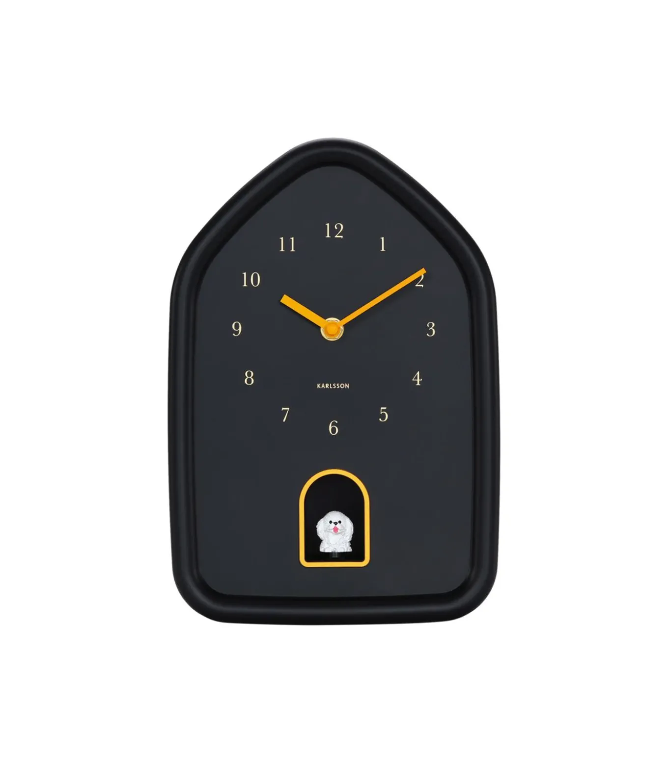 Een modern vormgegeven klok met een verrassend detail: elk heel uur laat een klein brutaal hondje zich even zien & horen. Het strakke silhouet en de subtiele gouden accenten maken dit ontwerp een stijlvolle toevoeging aan elke ruimte. Met zijn zachte vormen en warme uitstraling past de klok perfect binnen het Natural Glow thema. Een speels design met karakter, dat zorgt voor een glimlach, elke keer als de hond blaft.