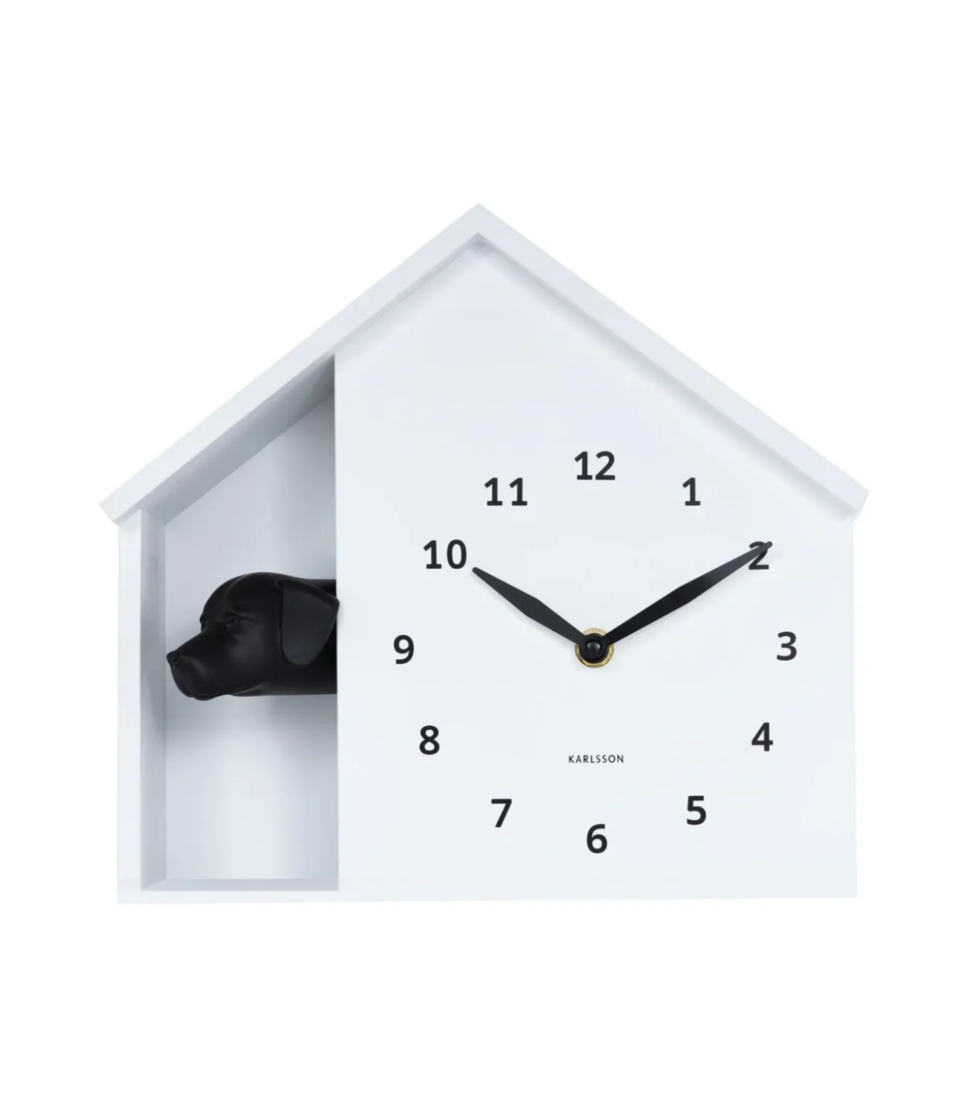 Deze speelse wandklok is een knipoog naar elke hondenliefhebber. In het charmante huisje kijkt een hond nieuwsgierig om het hoekje, klaar om jouw dag te bewaken. Elk uur laat hij van zich horen met een blaf, waardoor de klok niet alleen functioneel is maar ook karakter toevoegt aan de ruimte. Perfect als opvallend accent in de kinderkamer, woonkamer of hal. Het tijdloze ontwerp en het verrassende detail maken deze klok tot een unieke blikvanger.