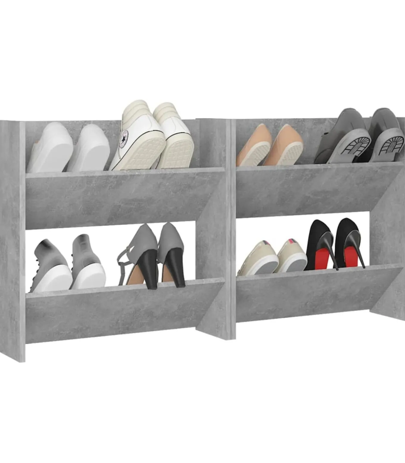 Wandschoenenkasten 2 st 60x18x60 cm spaanplaat betongrijs