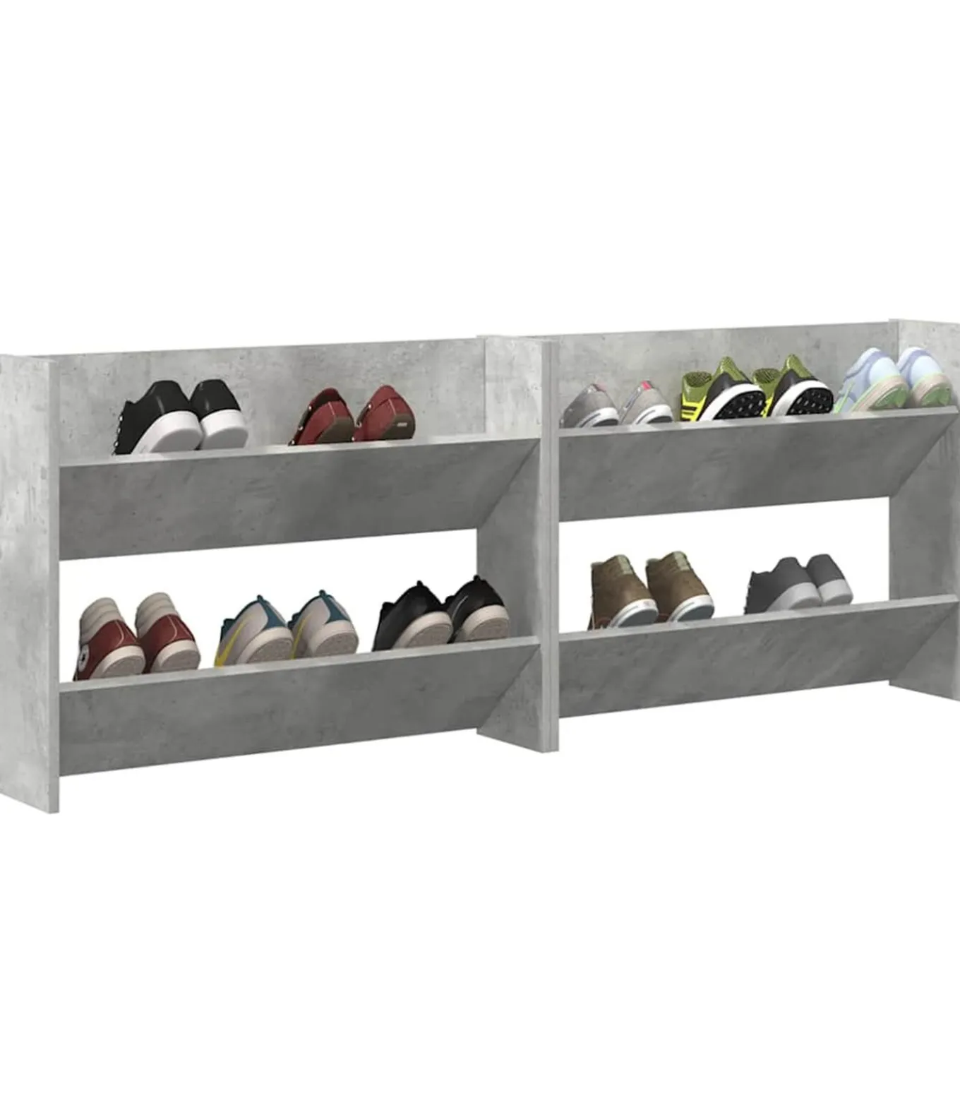 Wandschoenenkasten 2 st 80x18x60 cm spaanplaat betongrijs