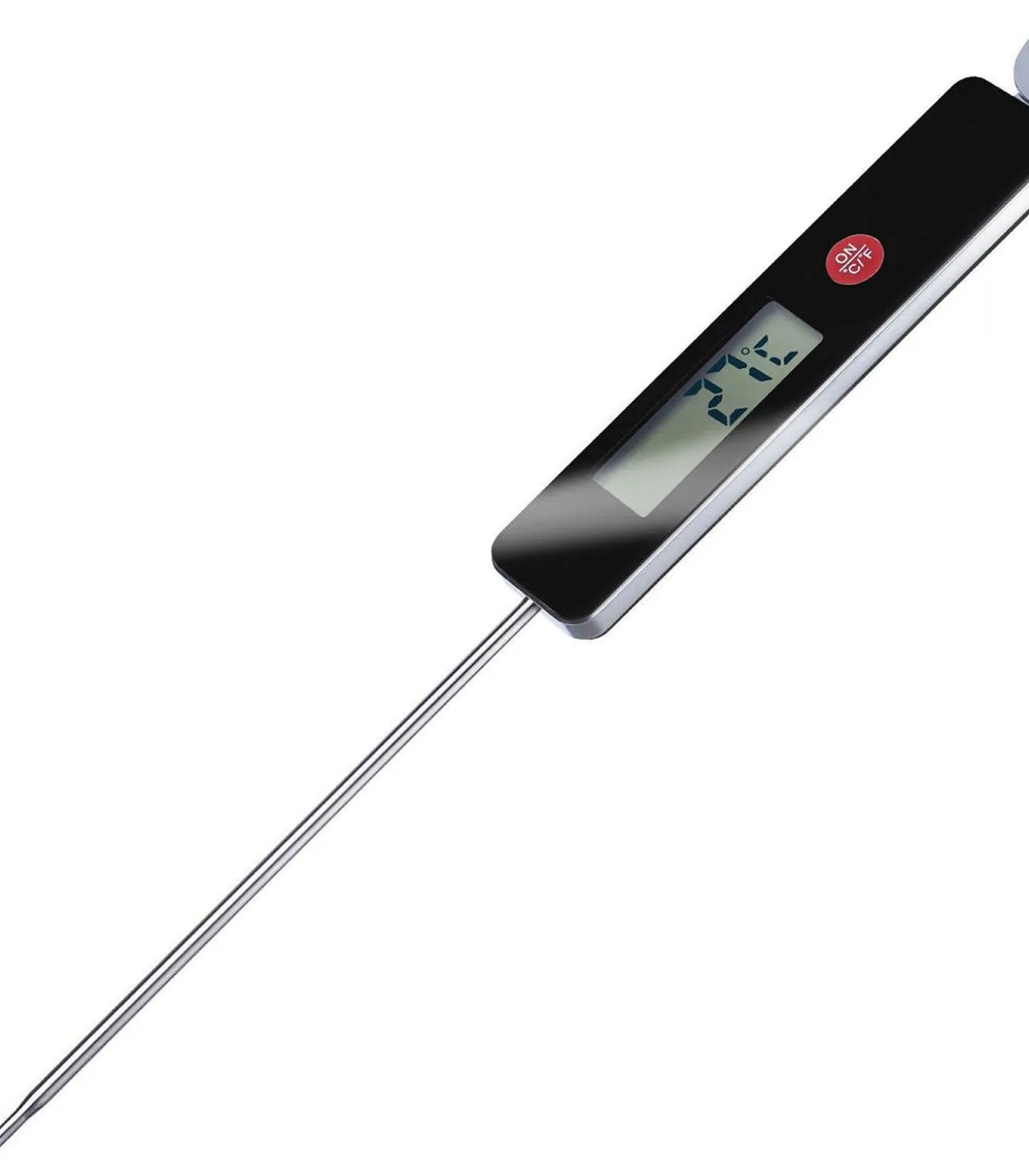 Westmark braadthermometer digitaal RVS keukenhulp zwartMet de braadthermometer van Westmark wordt het bereiden van vlees een fluitje van een cent. Dankzij de digitale sensor weet je altijd precies hoe warm je stukje vlees is, zodat je nooit meer hoeft te gokken of het gaar is.De thermometer is gemaakt van stevig RVS en kunststof en heeft een duidelijk digitaal display. Je steekt hem eenvoudig in het vlees en leest direct de temperatuur af, in graden Celsius of Fahrenheit. Na gebruik spoel je hem makkelijk schoon onder de kraan. Vergeet je hem uit te zetten? Geen zorgen, hij schakelt zichzelf automatisch uit!Extra informatieMeet nauwkeurig temperaturen van 0°C tot 200°CInclusief batterij, direct klaar voor gebruikGemaakt van duurzaam RVS en kunststofAutomatische uitschakeling voor extra gemak