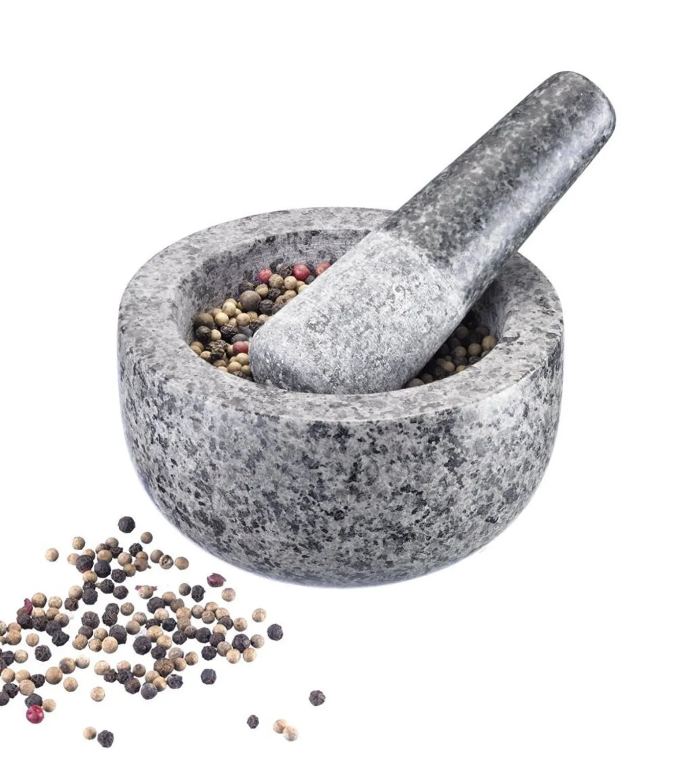 Westmark vijzel graniet 13 cm – kruidenmolen keukenaccessoireMet deze robuuste vijzel van graniet van Westmark wordt het fijnstampen van kruiden en specerijen een waar feestje in de keuken. De stevige granieten vijzel en stamper zorgen ervoor dat je moeiteloos aromatische pasta’s, pesto’s en marinades maakt, boordevol smaak.Het ruwe oppervlak van de vijzel helpt je om zelfs de hardste kruidenblokjes tot een fijn poeder te malen. Dankzij het stijlvolle design staat deze vijzel ook nog eens prachtig op je aanrecht. Maak je gerechten extra bijzonder en ontdek hoe leuk het is om zelf kruiden te malen!Extra informatieGemaakt van duurzaam natuurgranietIdeaal voor het malen van kruiden en specerijenStijlvol en robuust ontwerpGemakkelijk schoon te maken met water